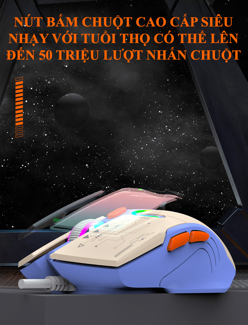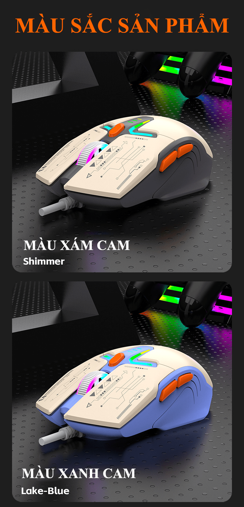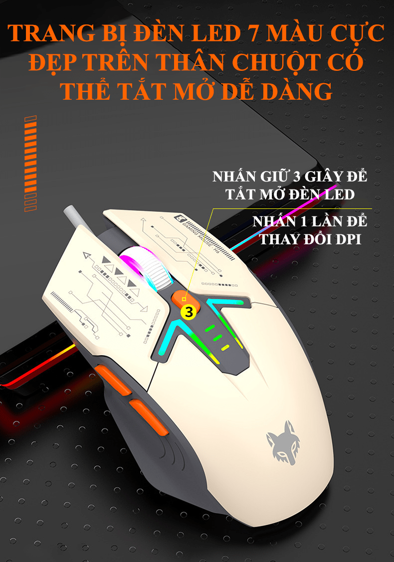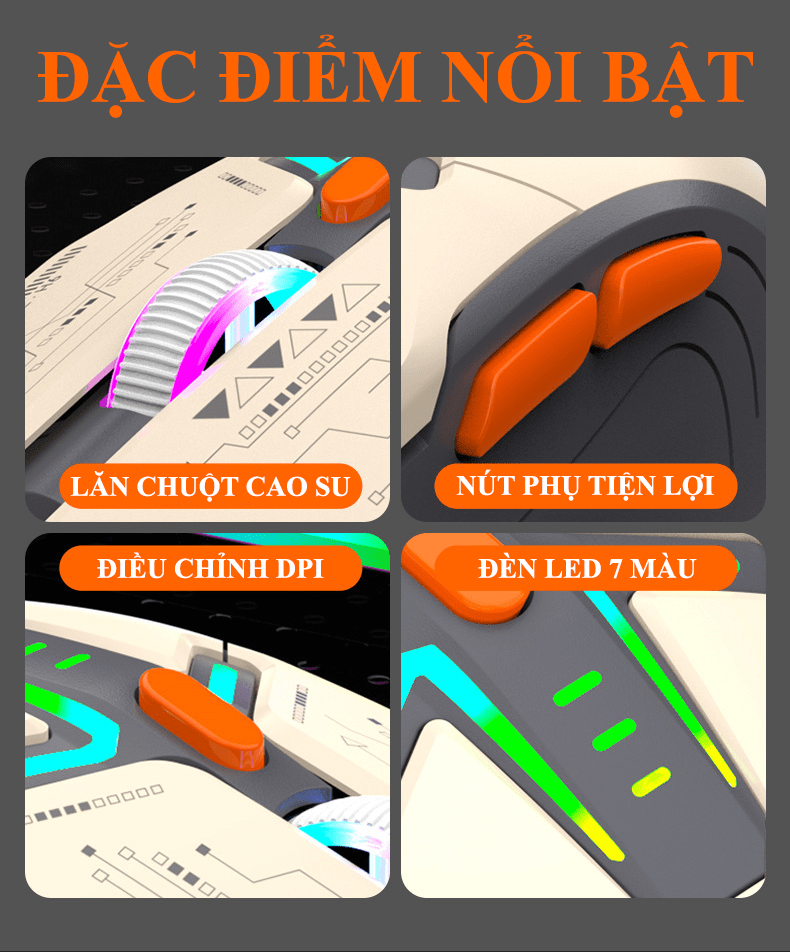 Tính năng nổi bật: chống mỏi tay, độ nhạy cao, siêu nhẹ, đèn led 7 màu