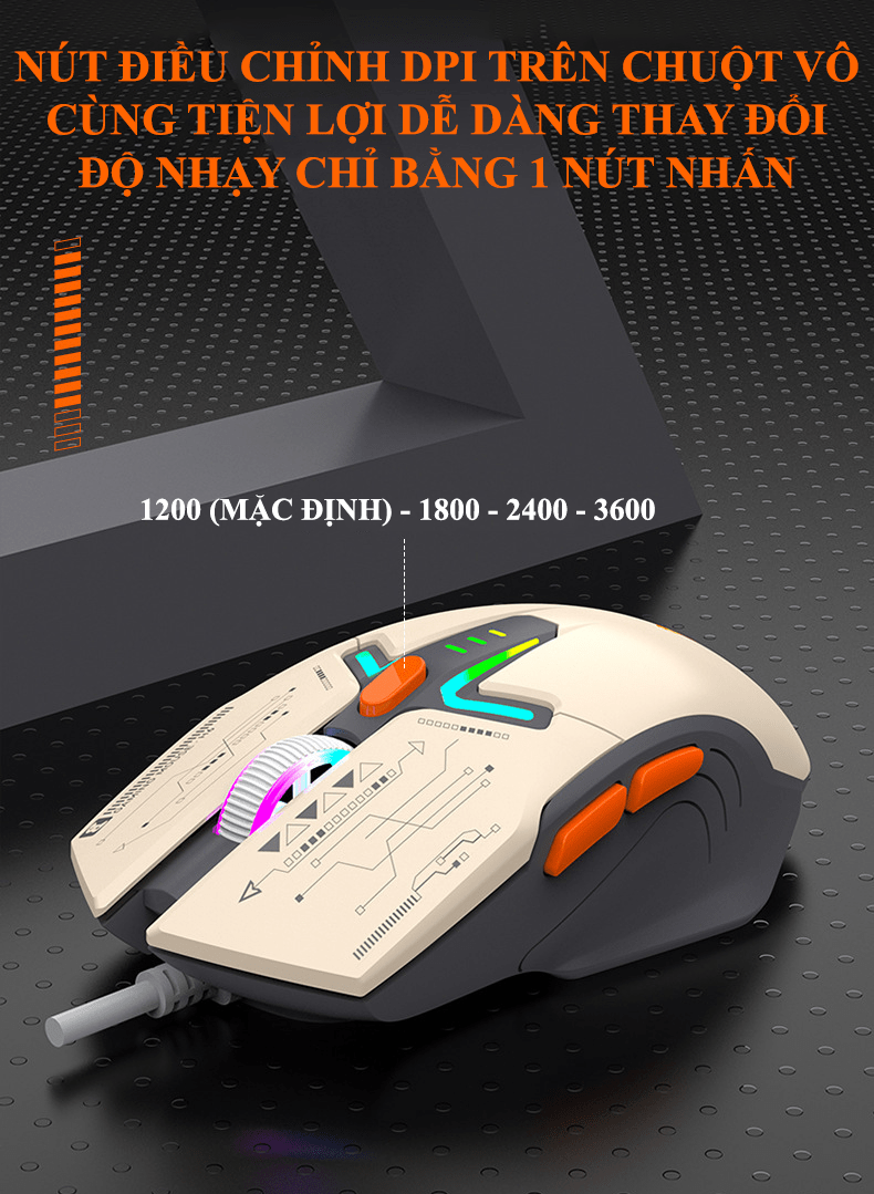 Độ nhạy lên đến 3600DPI phù hợp chơi game, làm việc văn phòng, thiết kế...