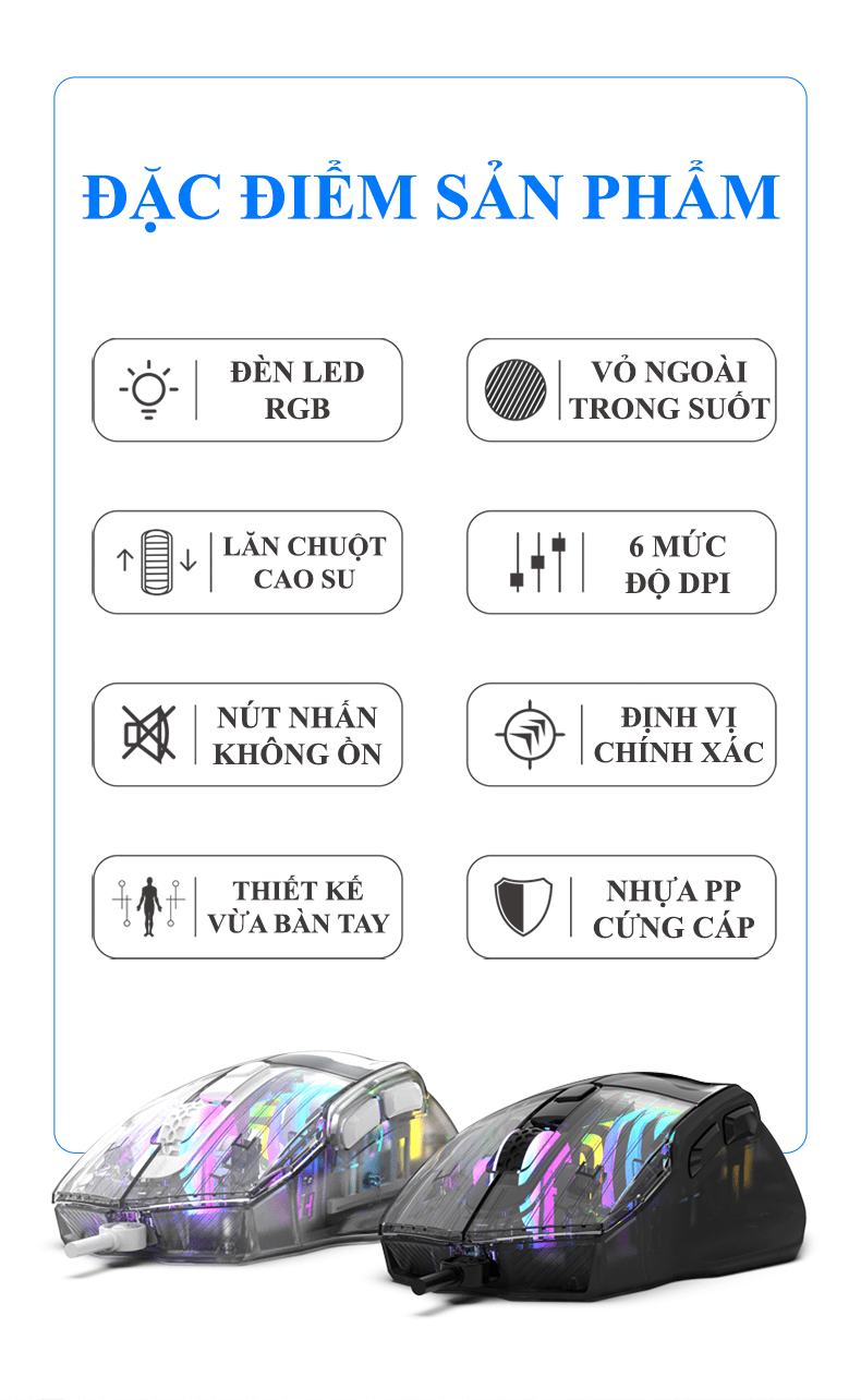 Với hình dạng Ergonomic và thiết kế thoải mái, màu sắc ánh sáng mang đến tuyệt vời hiệu ứng hình ảnh, làm cho nó tuyệt vời Chuột chơi game.