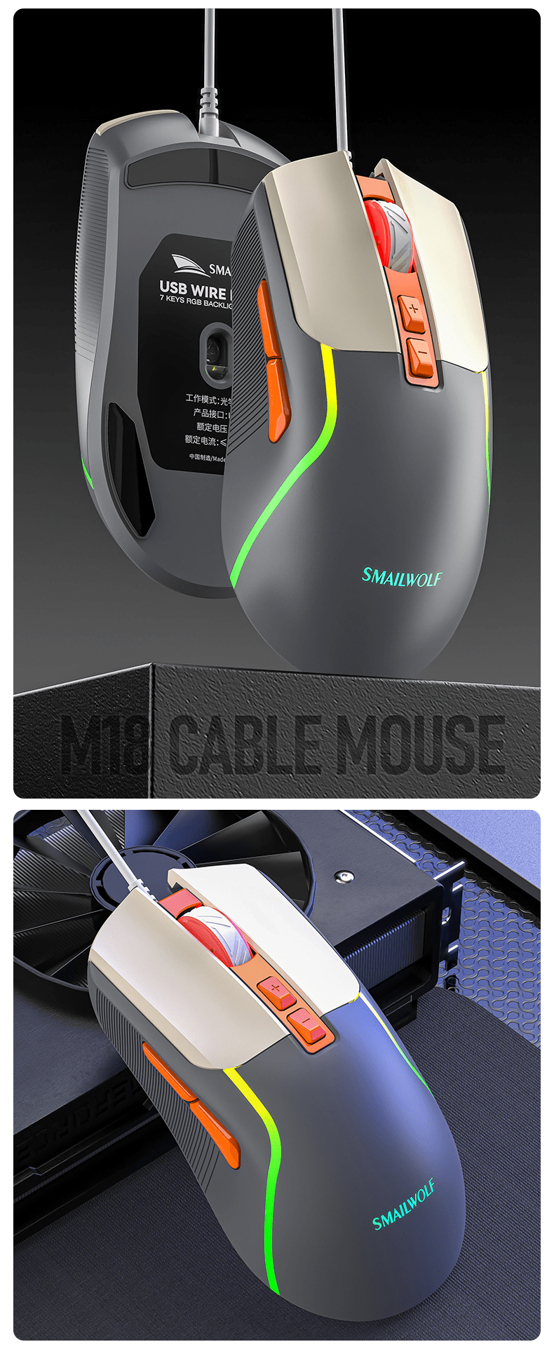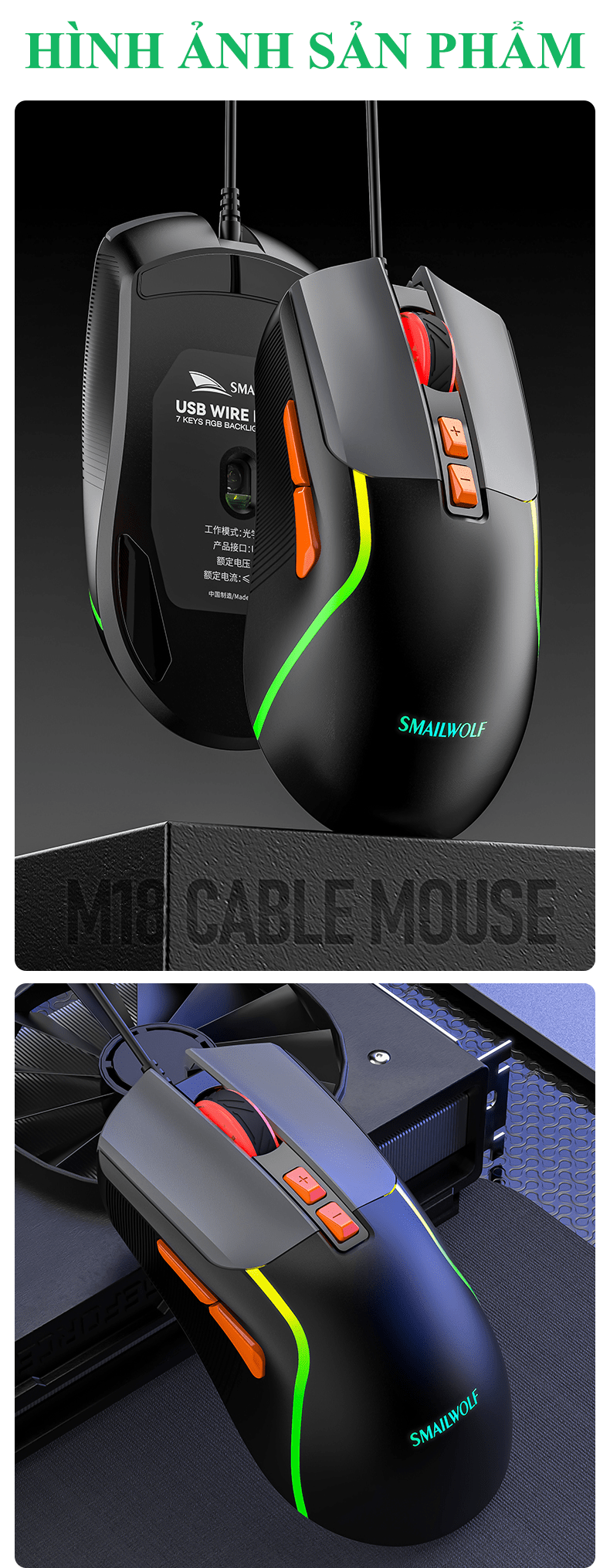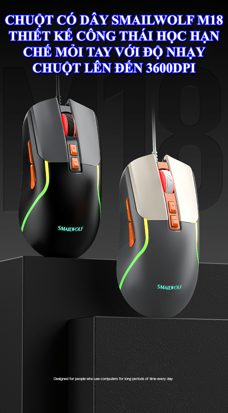 Chuột có dây SMAILWOLF M18 kết nối bằng dây cổng USB với thiết kế công thái học kèm theo độ nhạy lên đến 3600DPI