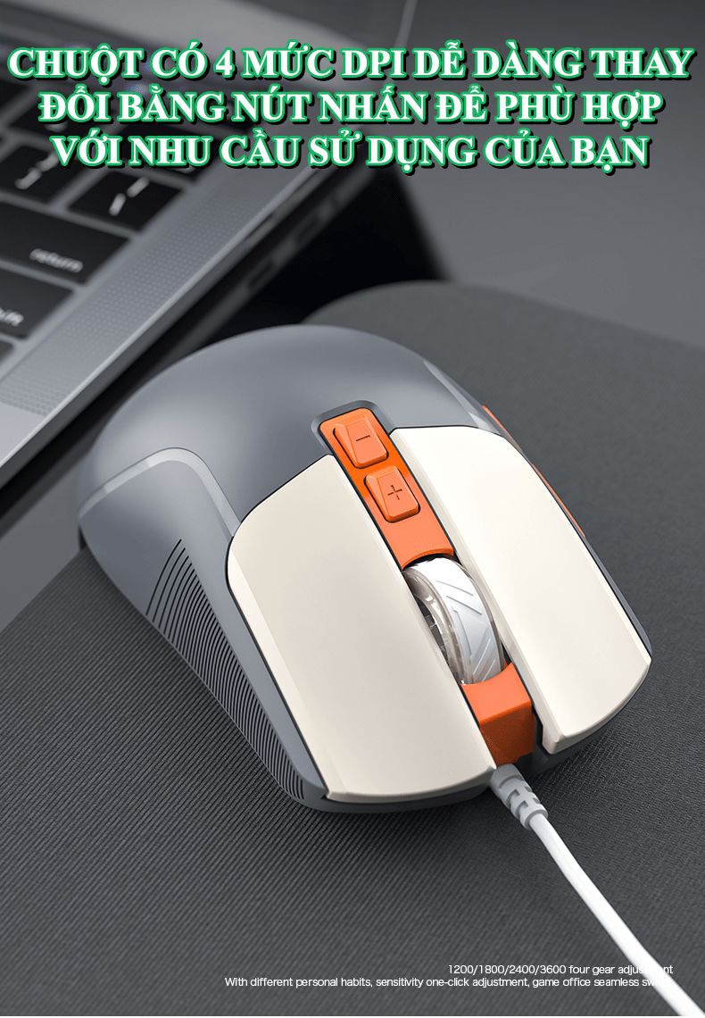 Độ nhạy lên đến 3600DPI phù hợp chơi game, làm việc văn phòng, thiết kế...