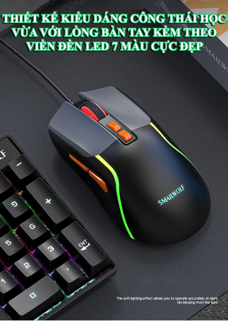 Tính năng nổi bật: chống mỏi tay, độ nhạy cao, siêu nhẹ, đèn led 7 màu