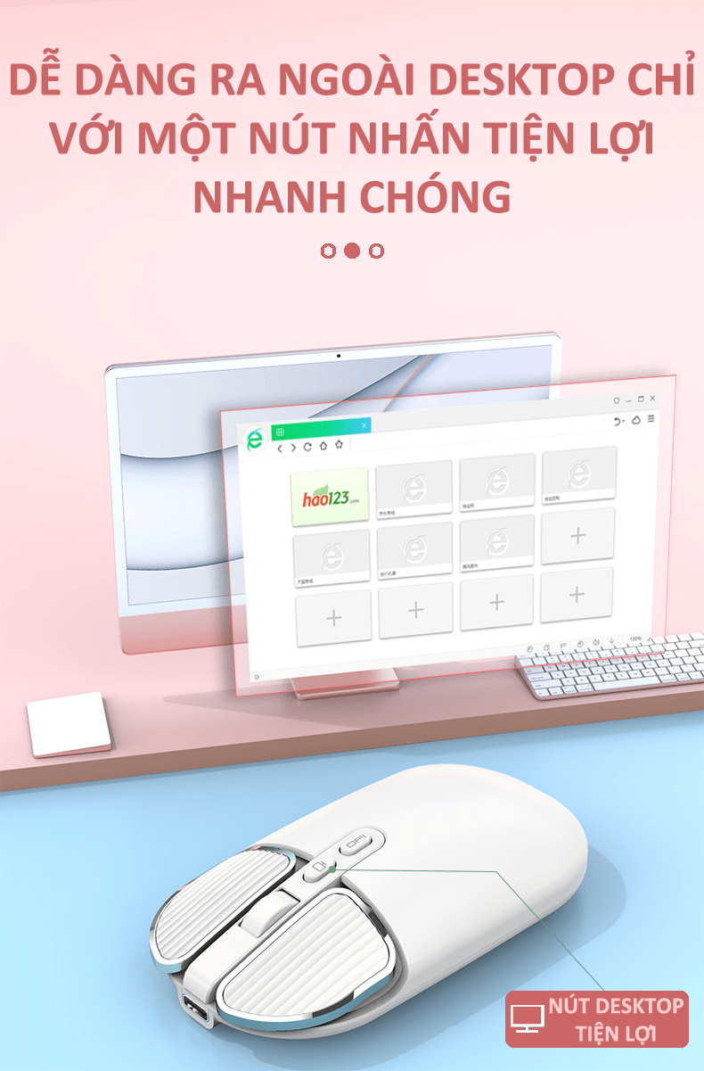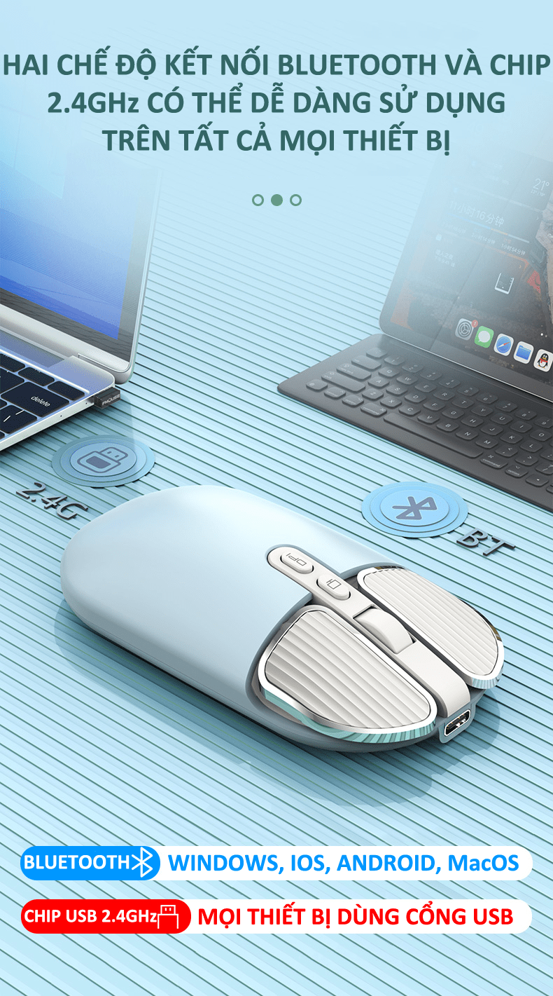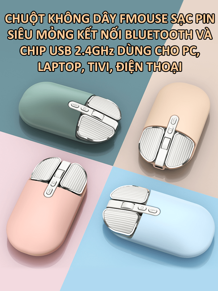 Chuột không dây FMOUSE M203 sạc pin siêu mỏng kết nối bluetooth và chip USB 2.4GHz dùng cho pc, laptop, tivi, điện thoại