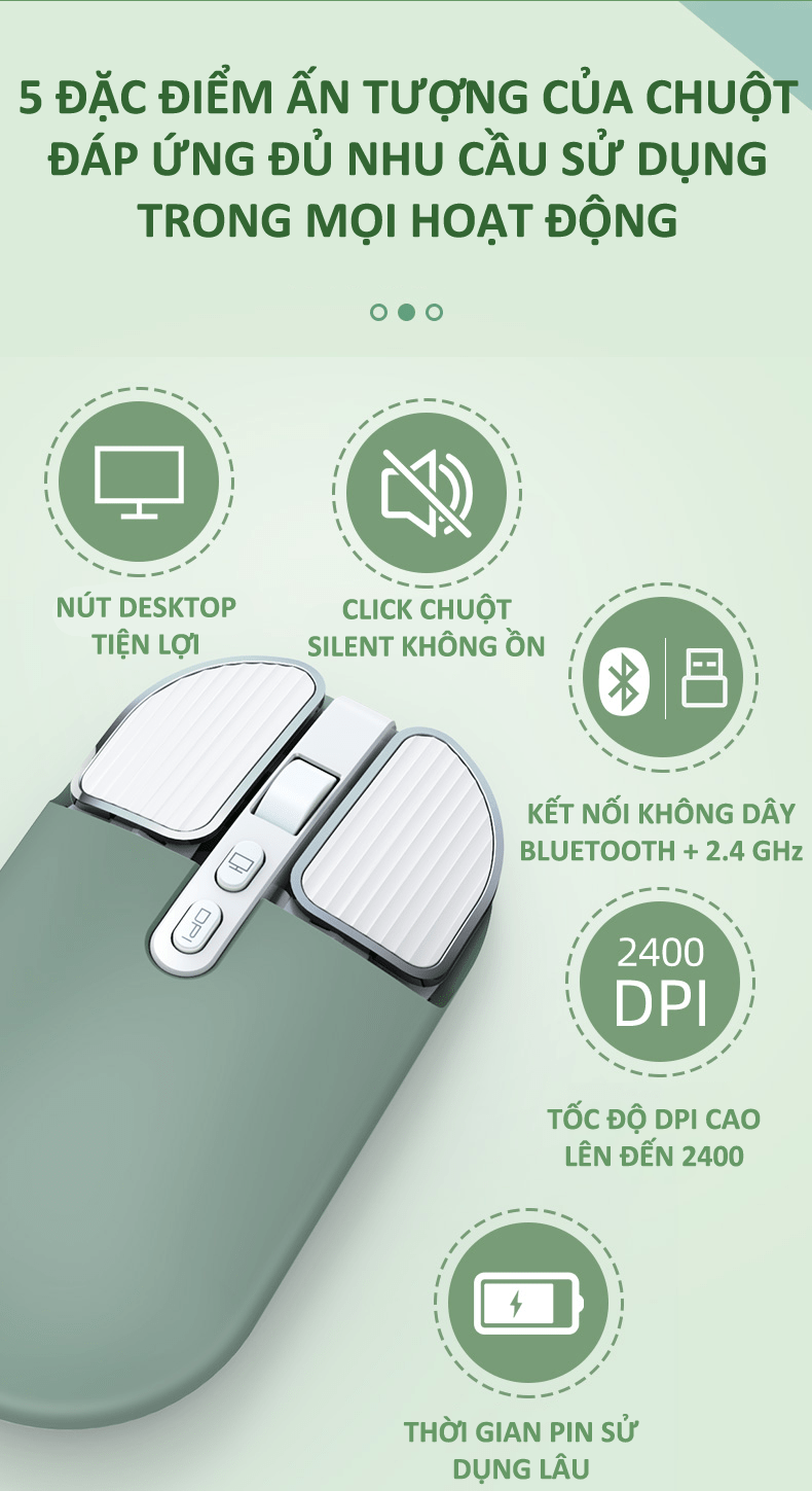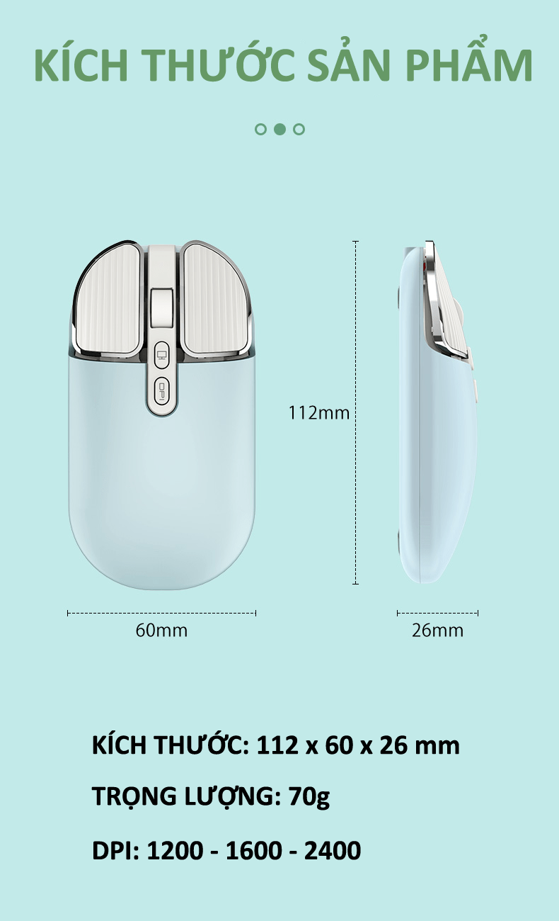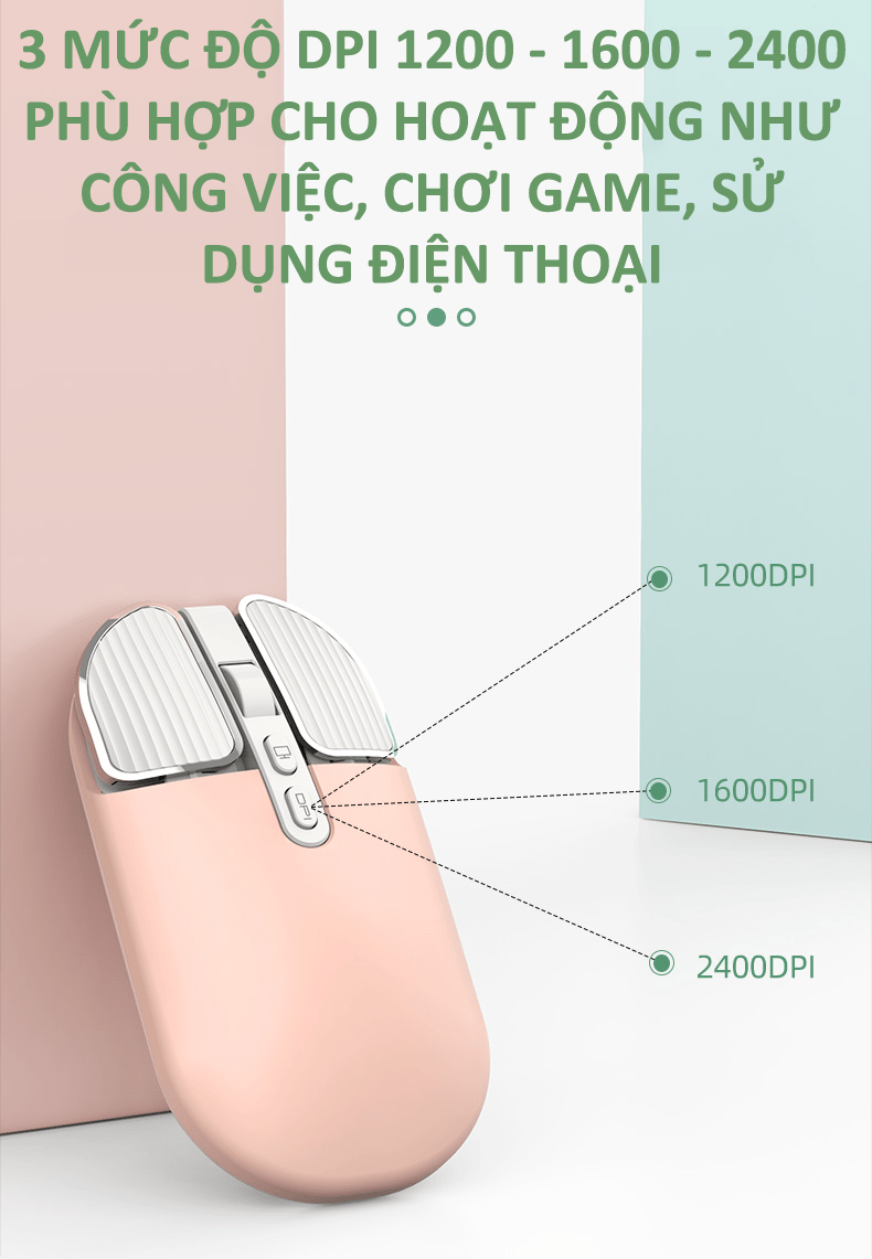 Độ phân giải cao, cảm biến chuột 3 chế độ 1200 – 1600 – 2400 dpi, kết nối dễ dàng với độ tương thích cao