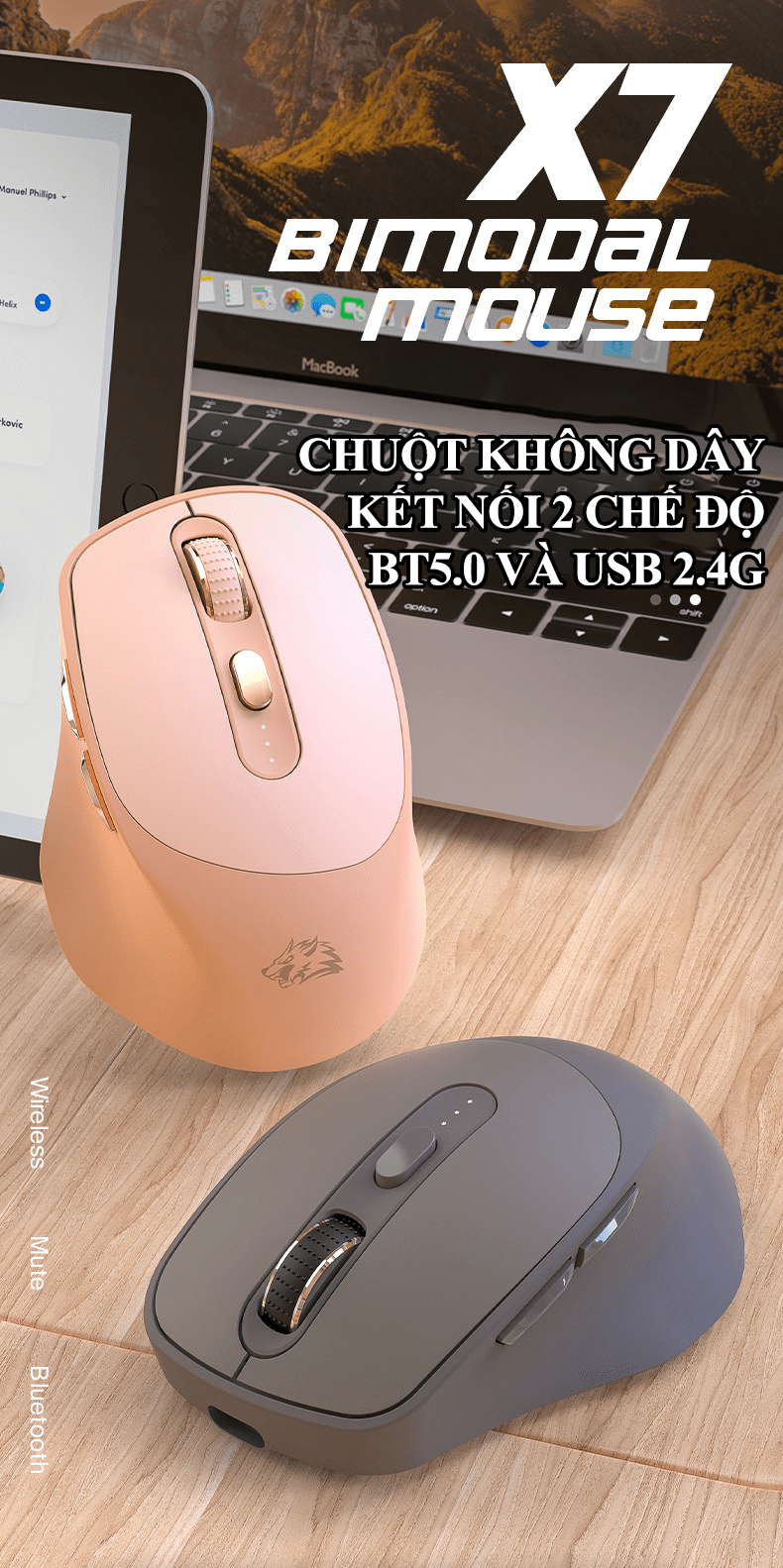 Chuột không dây FREEWOLF X7 kết nối bằng Bluetooth và USB 2.4G sử dụng pin sạc tiện lợi với 5 mức độ DPI lên đến 4000