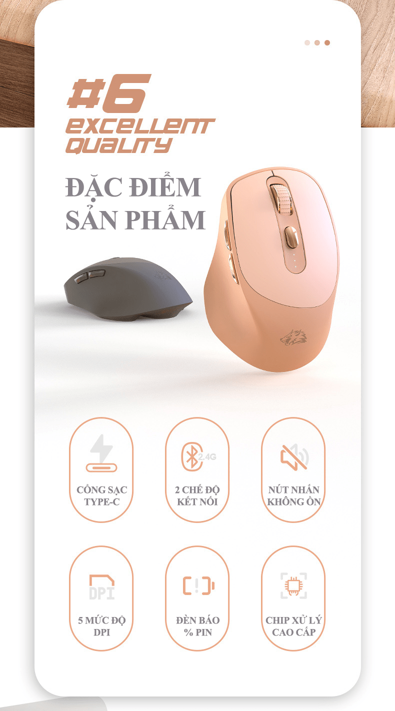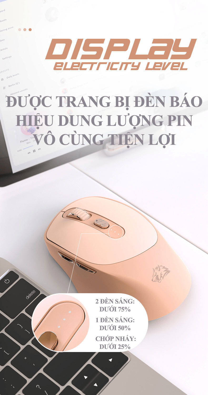 * Khi Bạn Để Chuột Hơn 5 Phút, Nó Sẽ Tự Động Chuyển Về Chế Độ Ngủ Tiết Kiệm Điện Của Chuột Và Nhấp Bất Kỳ Nút Nào Để Đánh Thức Chuột hoạt động trở lại.