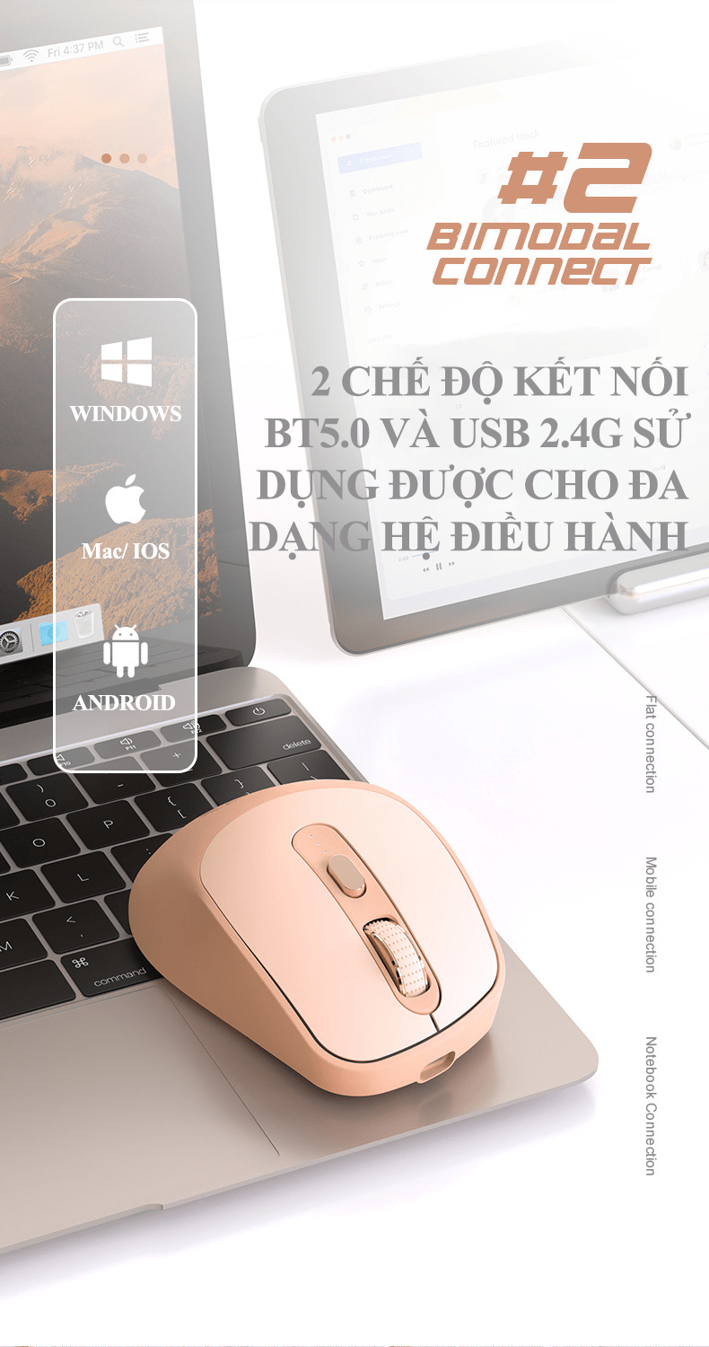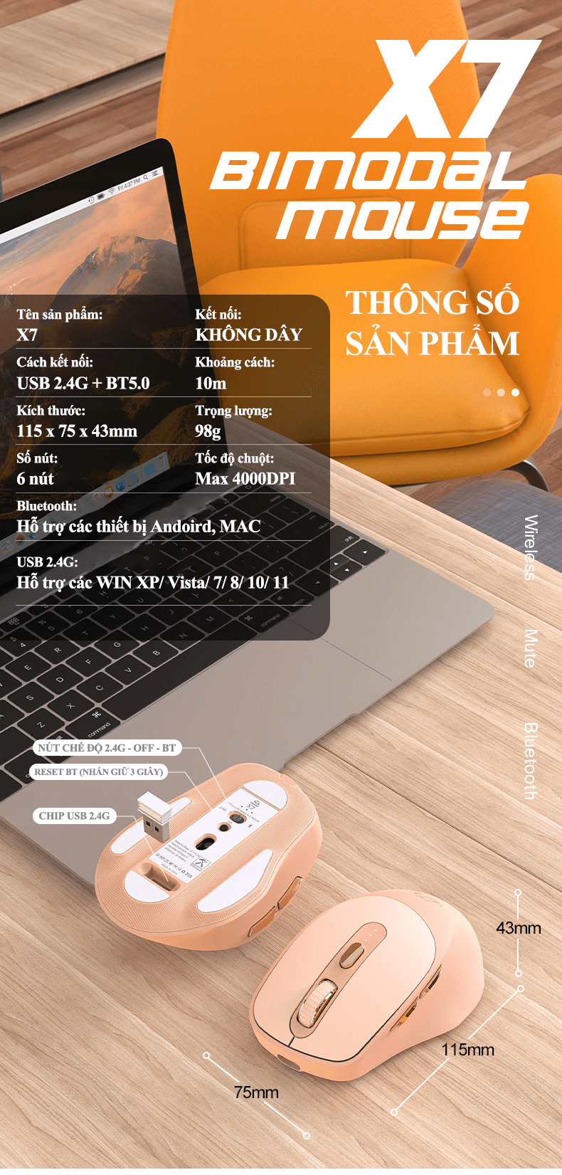 * Kết nối không dây Bluetooth, hỗ trợ hầu hết mọi máy tính, hoạt động không dây 10m, đường truyền ổn định