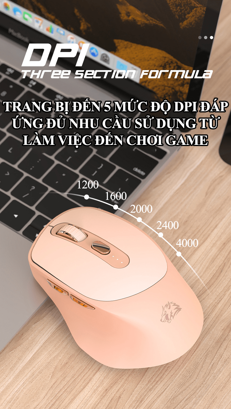 * Thiết kế tiện dụng: được thiết kế cho người dùng thuận tay phải để có cảm giác tay tốt nhất. 5 mức DPI có thể điều chỉnh (1200/ 1600/ 2000/ 2400/ 4000) cho phép bạn tự do kiểm soát tốc độ chuột.