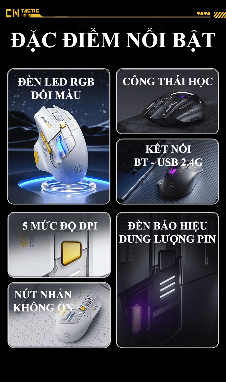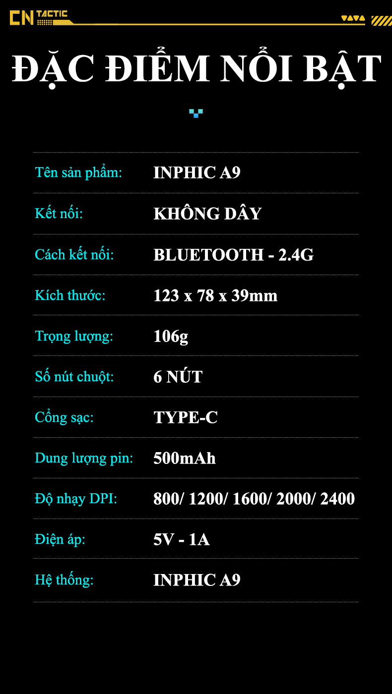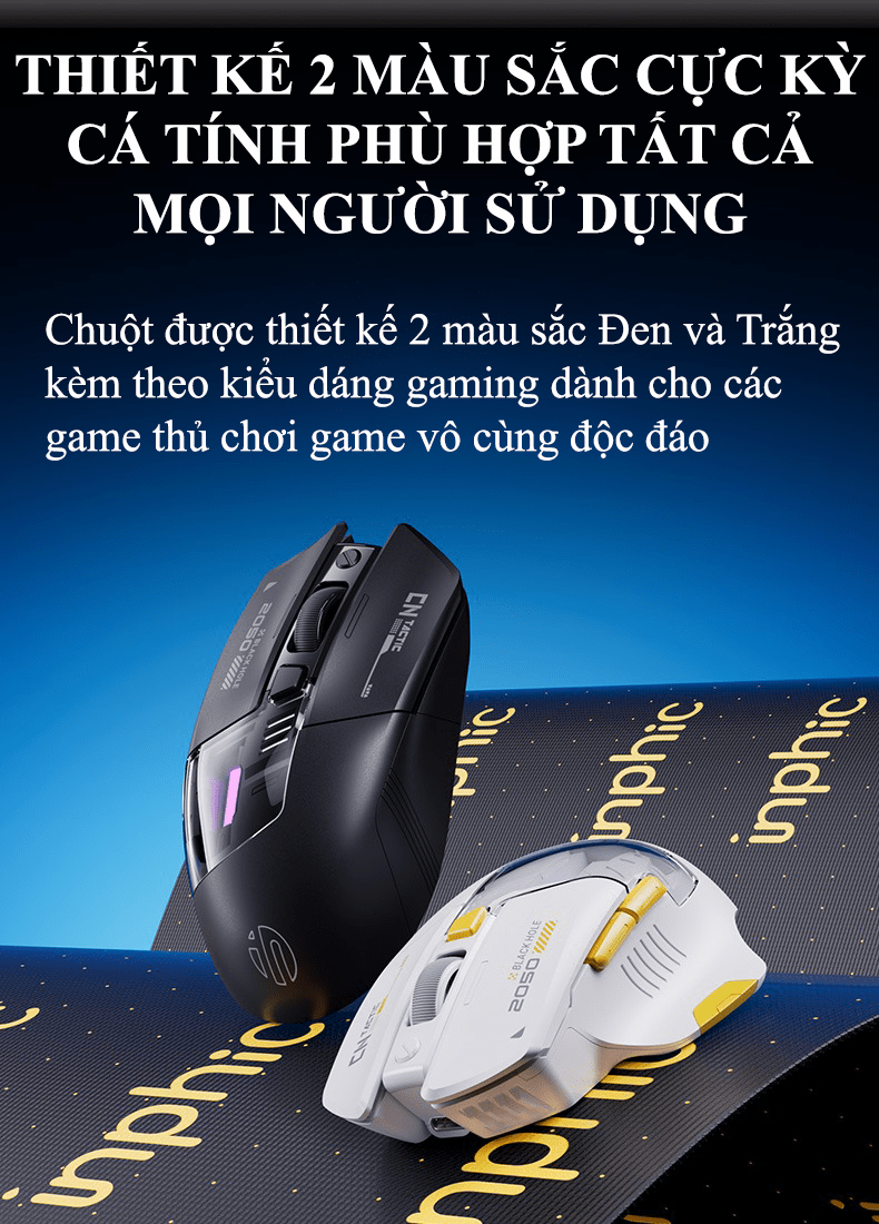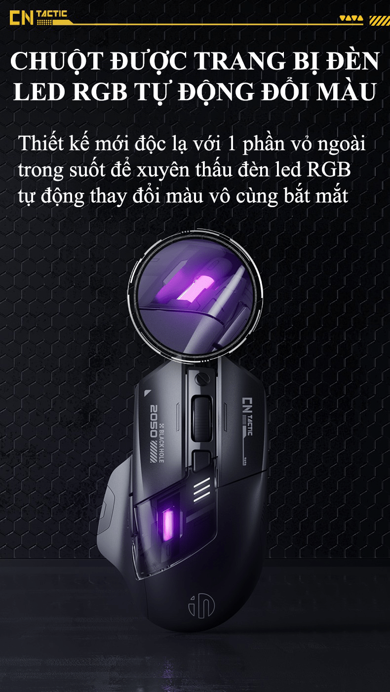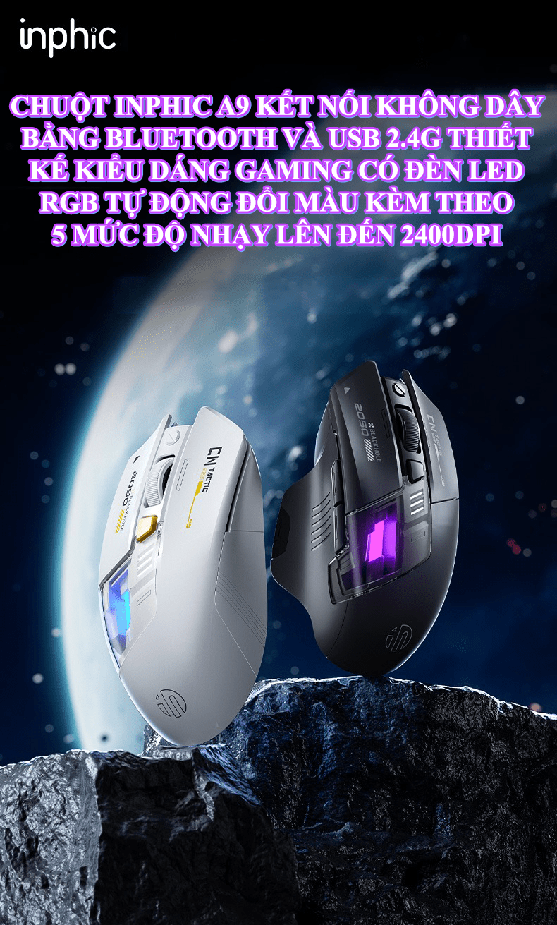 Chuột không dây INPHIC A9 kết nối Bluetooth và USB 2.4G thiết kế mới lạ có đèn led RGB tự thay đổi màu cực đẹp
