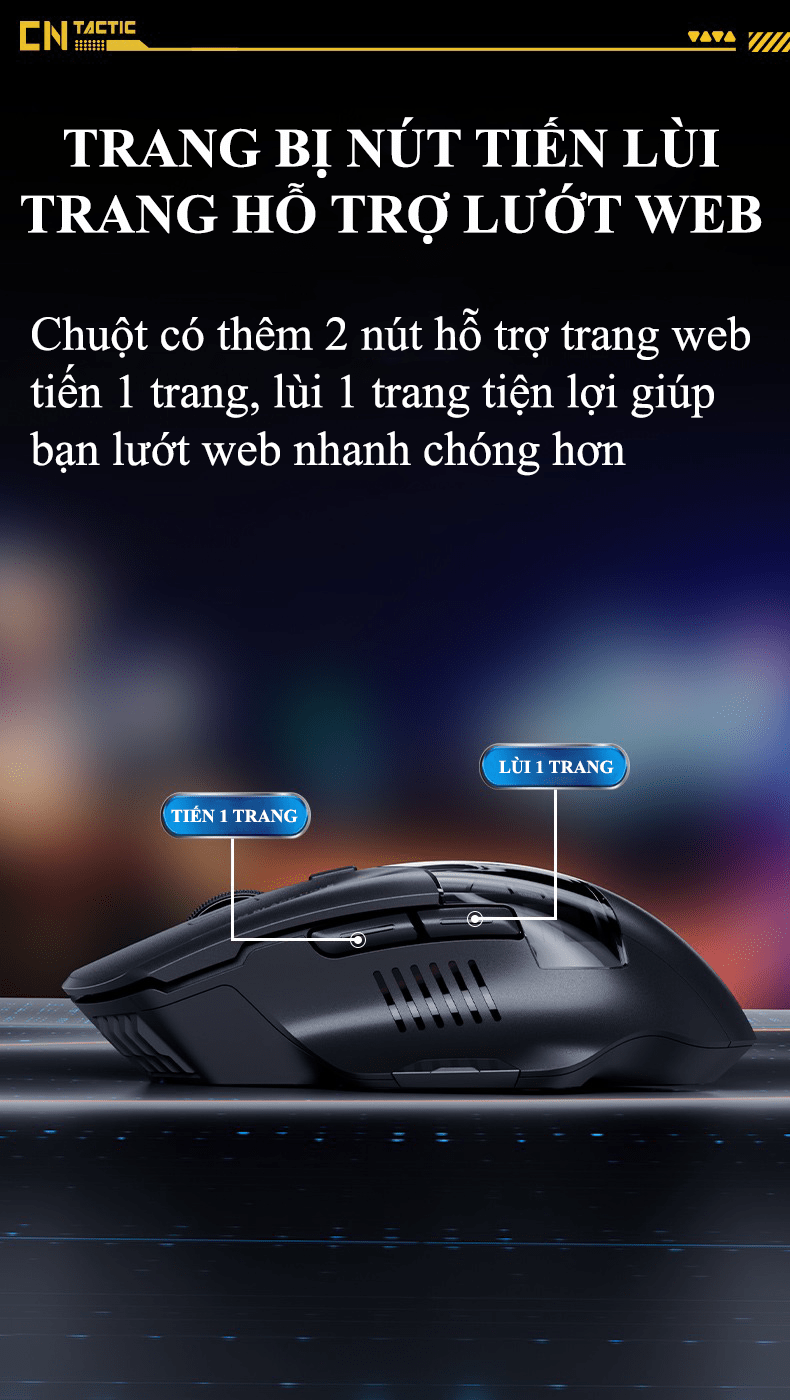Có 6 phím bấm: Chuột trái, chuột phải, con lăn, nút dpi, back, next