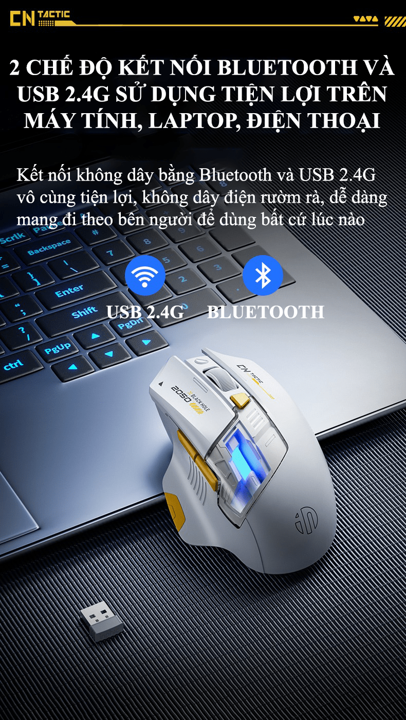 Kết nối không dây 2 chế độ Bluetooth - USB 2.4G