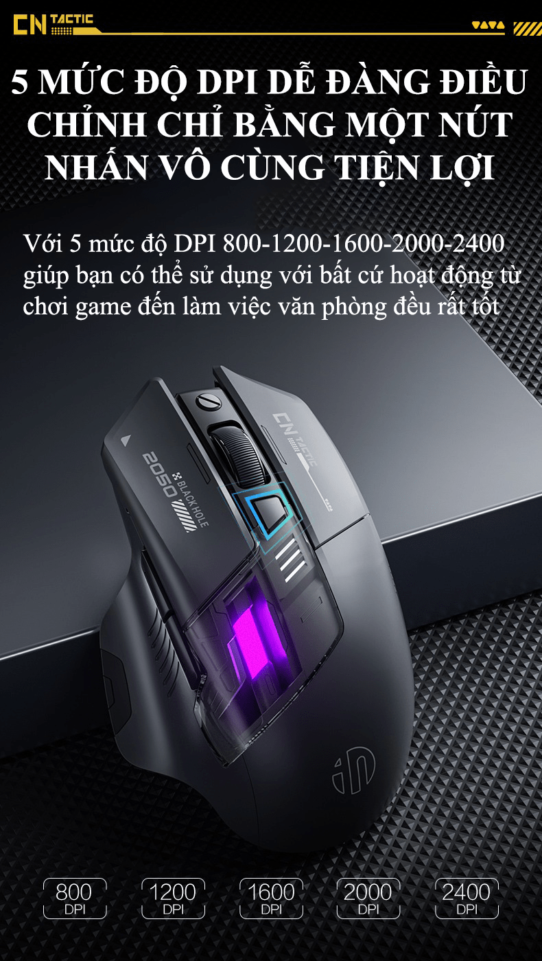 Độ nhạy lên đến 2400DPI phù hợp chơi game, làm việc văn phòng, thiết kế...