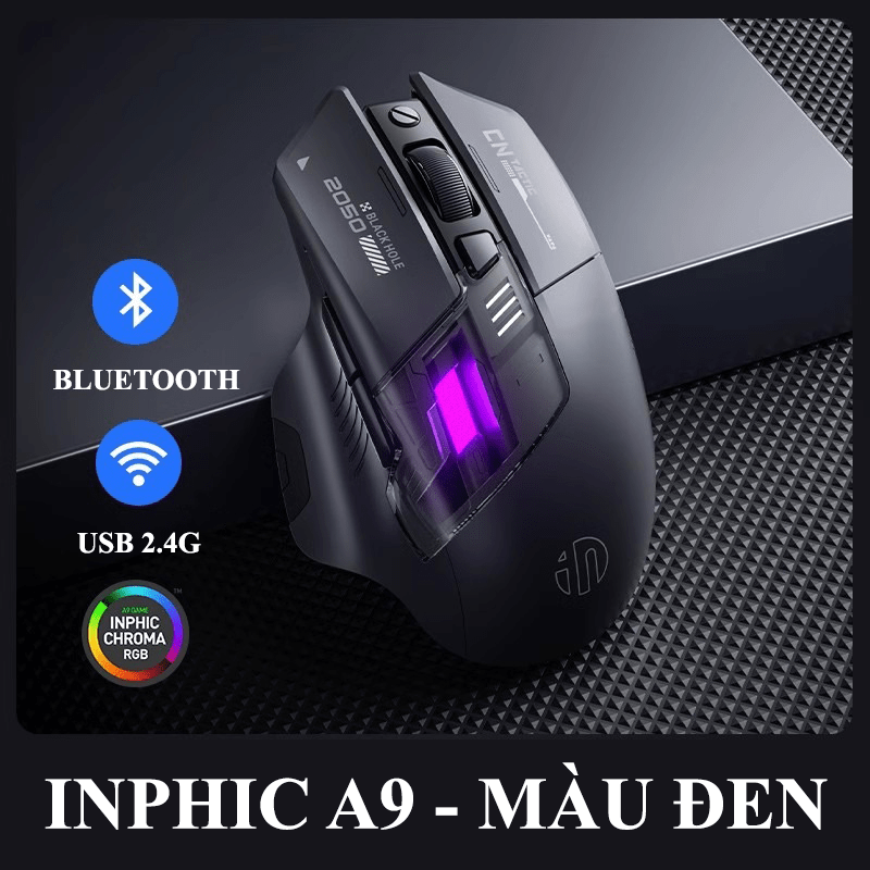 Chuột không dây INPHIC A9 kết nối Bluetooth và USB 2.4G thiết kế mới lạ có đèn led RGB tự thay đổi màu cực đẹp