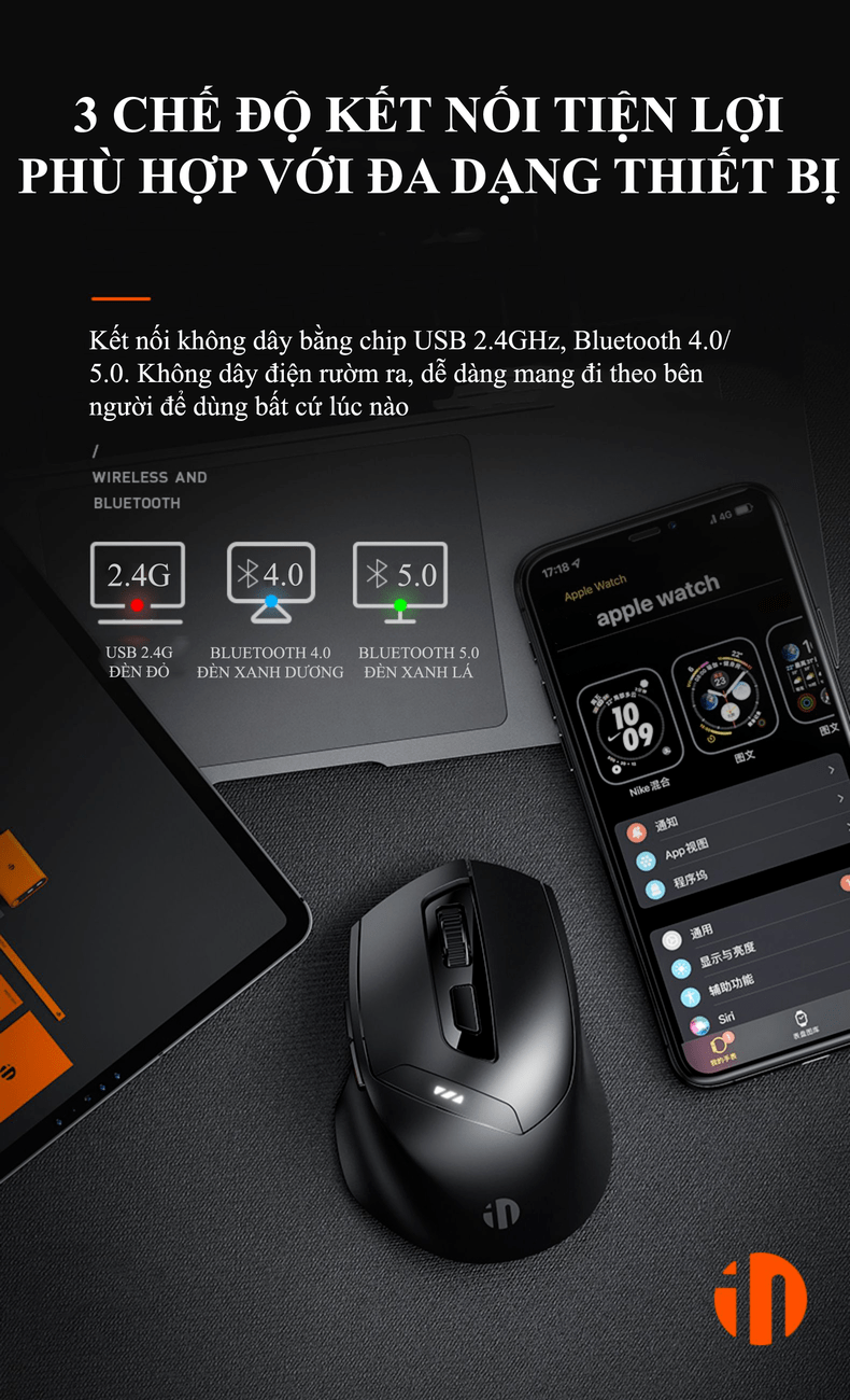 * Thiết kế tiện dụng: Chuột Bluetooth được thiết kế cho người dùng thuận tay phải để có cảm giác tay tốt nhất. Sáu nút hiệu quả và ba mức DPIi có thể điều chỉnh (1000/1200/1600) cho phép bạn tự do kiểm soát tốc độ chuột.