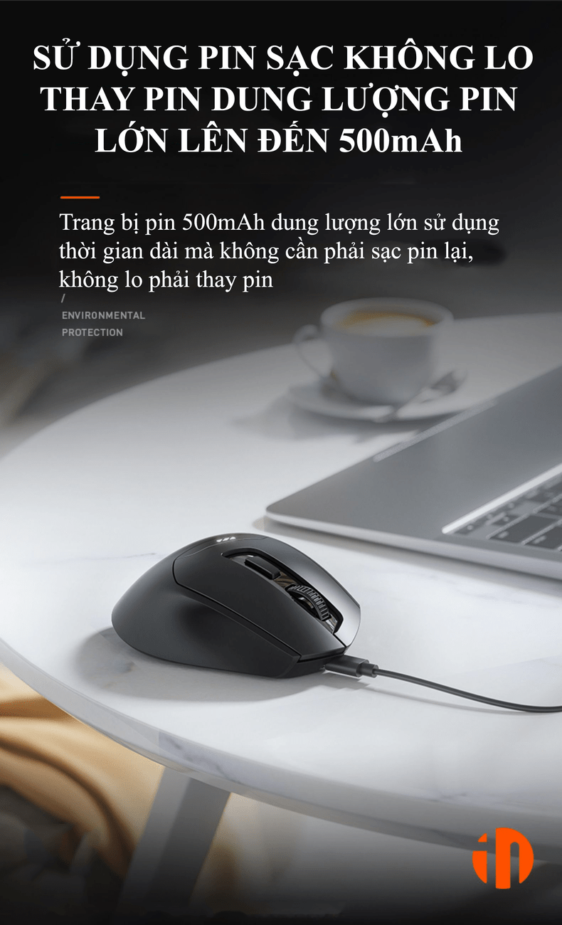 * Tích hợp Pin sạc chất lượng cao 500 mah. Khi Bạn Để Chuột Hơn 5 Phút, Nó Sẽ Tự Động Chuyển Về Chế Độ Ngủ Tiết Kiệm Điện Của Chuột Và Nhấp Bất Kỳ Nút Nào Để Đánh Thức Chuột hoạt động trở lại.