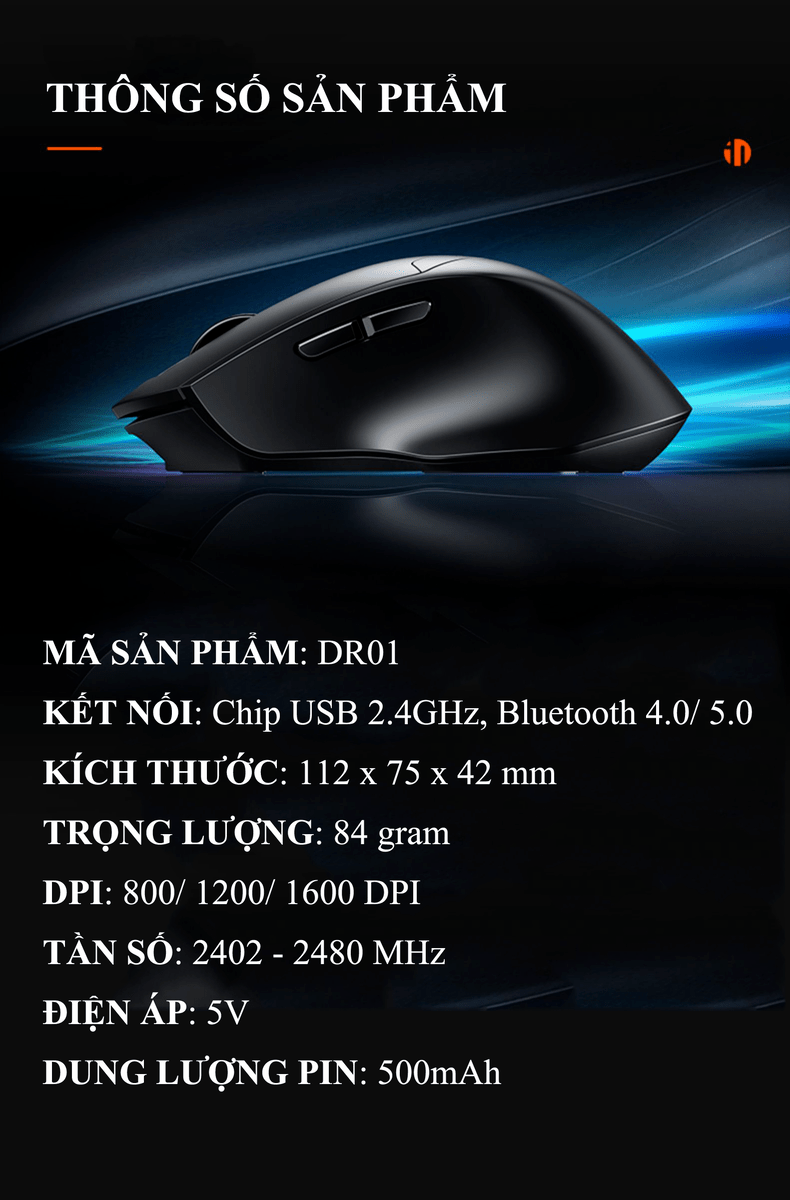 * DR01 sử dụng công nghệ theo dõi cảm biến quang học có độ chính xác cao tiên tiến hơn, di chuyển chính xác, không có đèn chiếu vào đáy chuột
