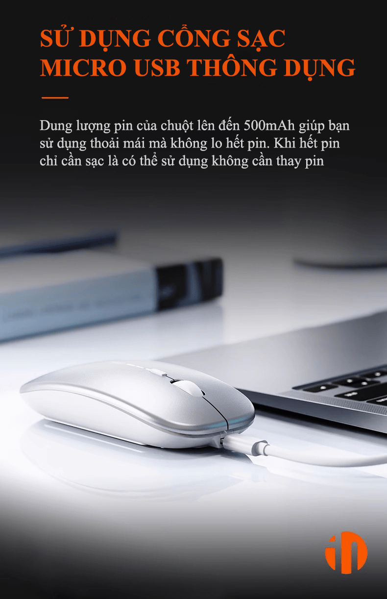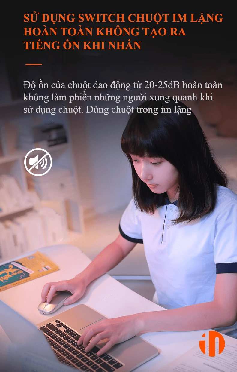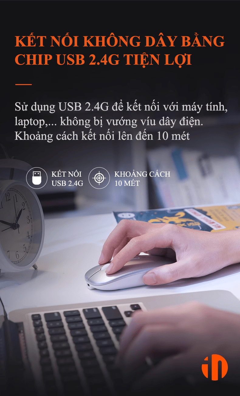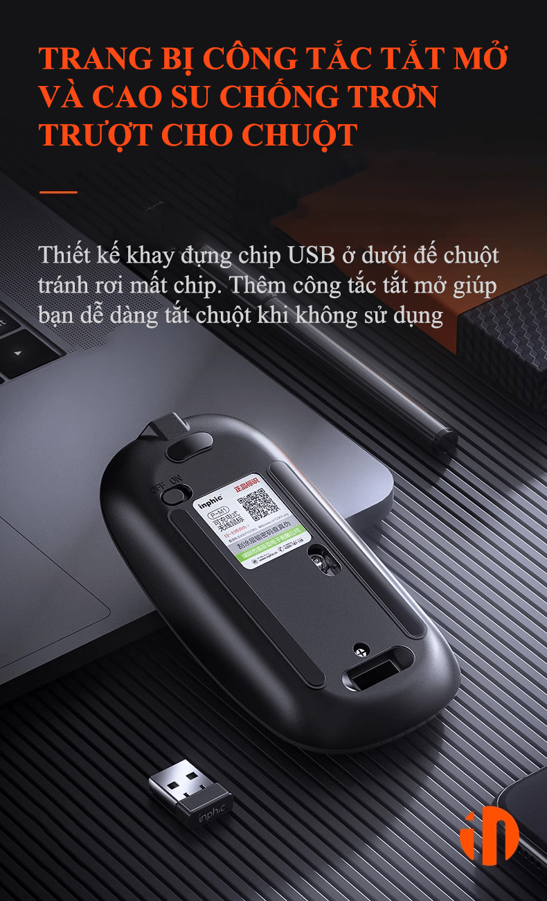 Chuột không dây INPHIC M1PRO với nút nhấn silent không ồn kết nối bằng BLUETOOTH và CHIP USB 2.4G thiết kế siêu mỏng