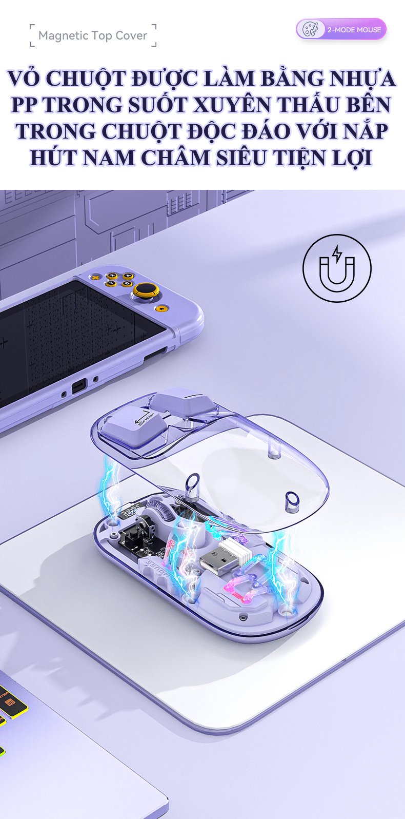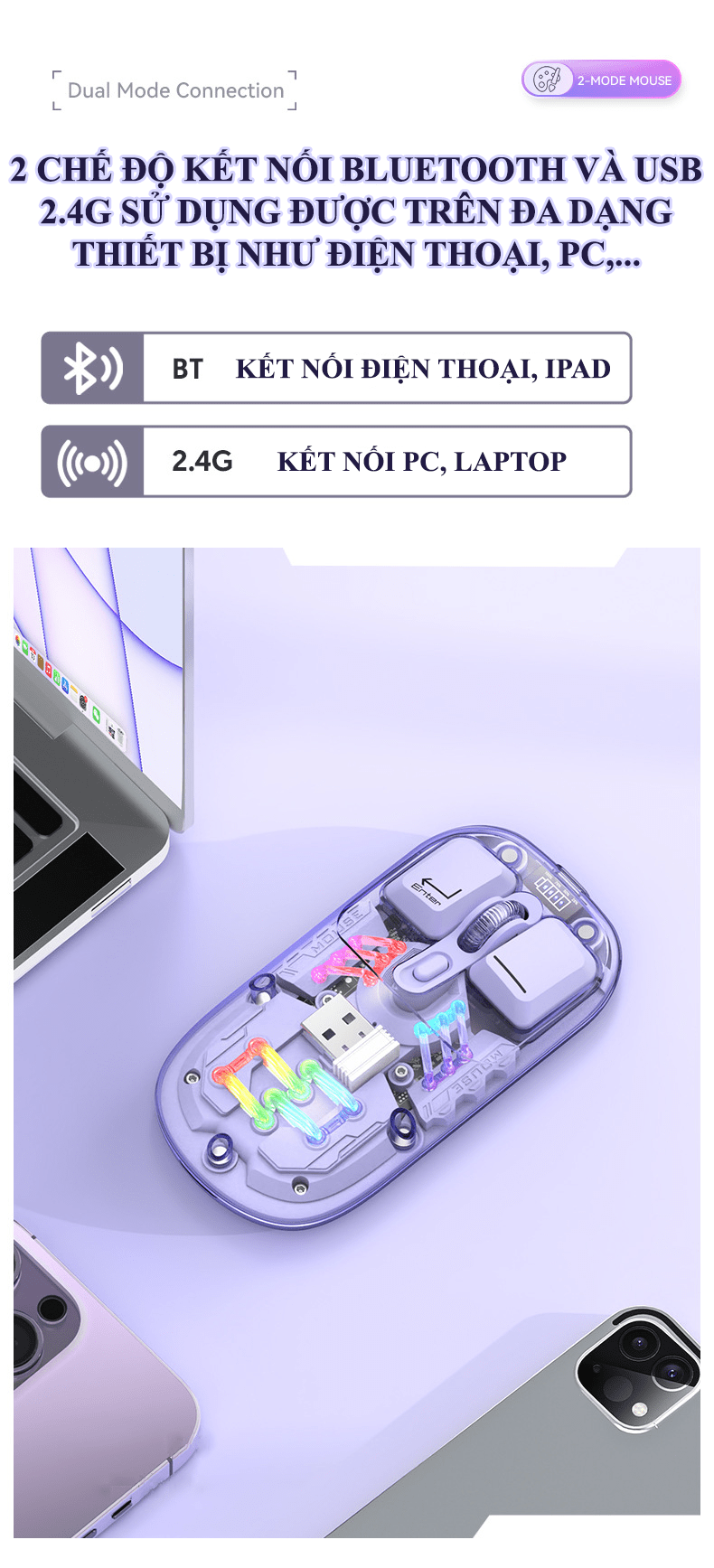 Chuột không dây với 2 chế độ kết nối Bluetooth/ chip USB 2.4G