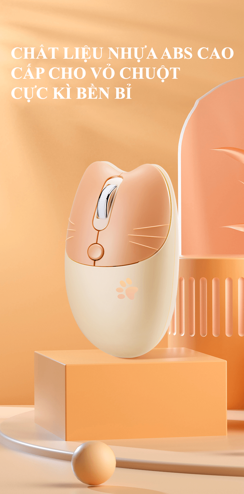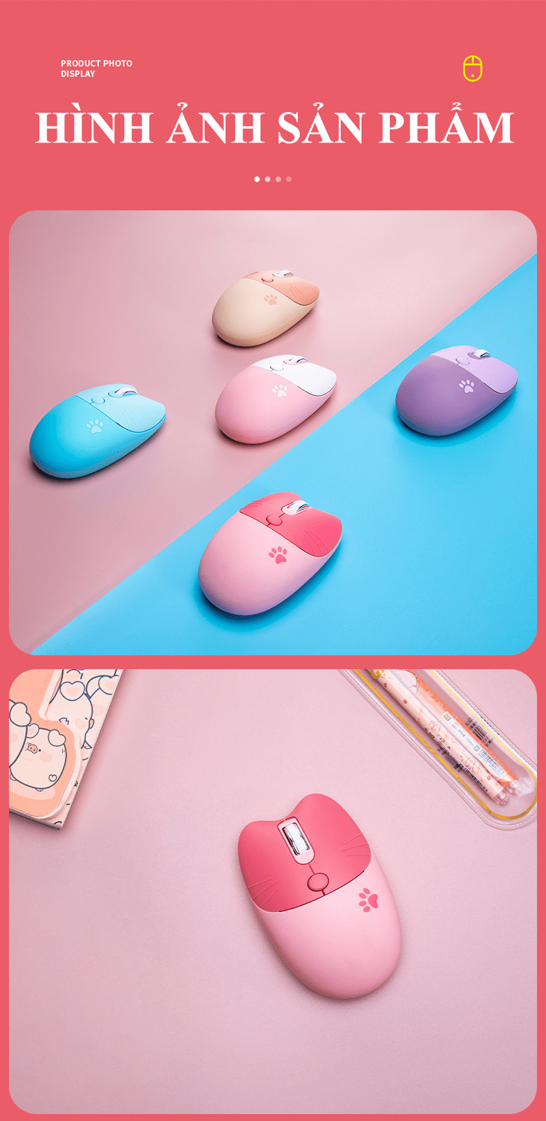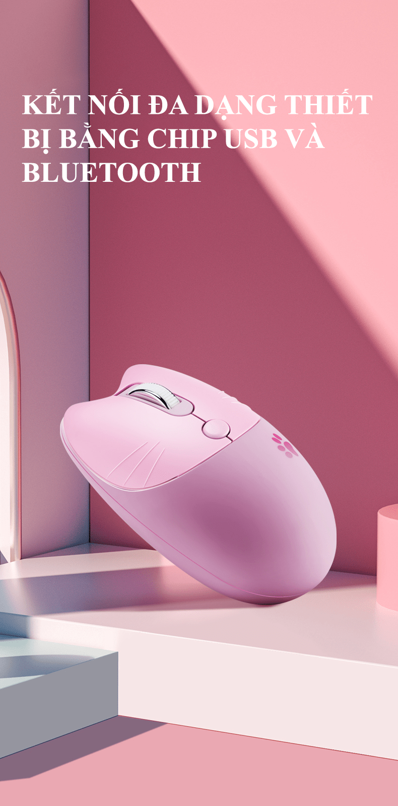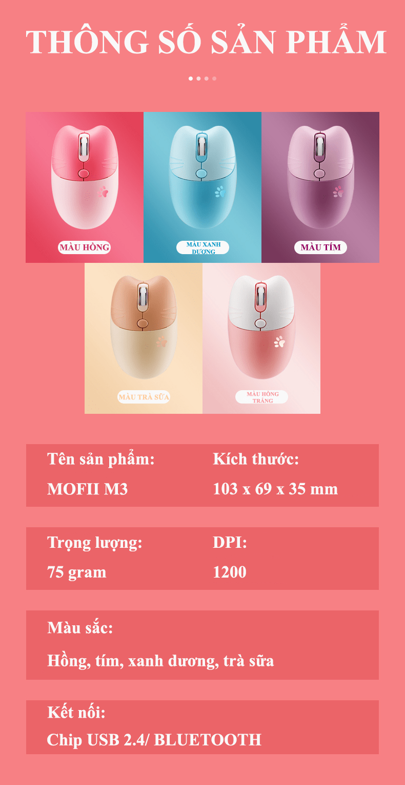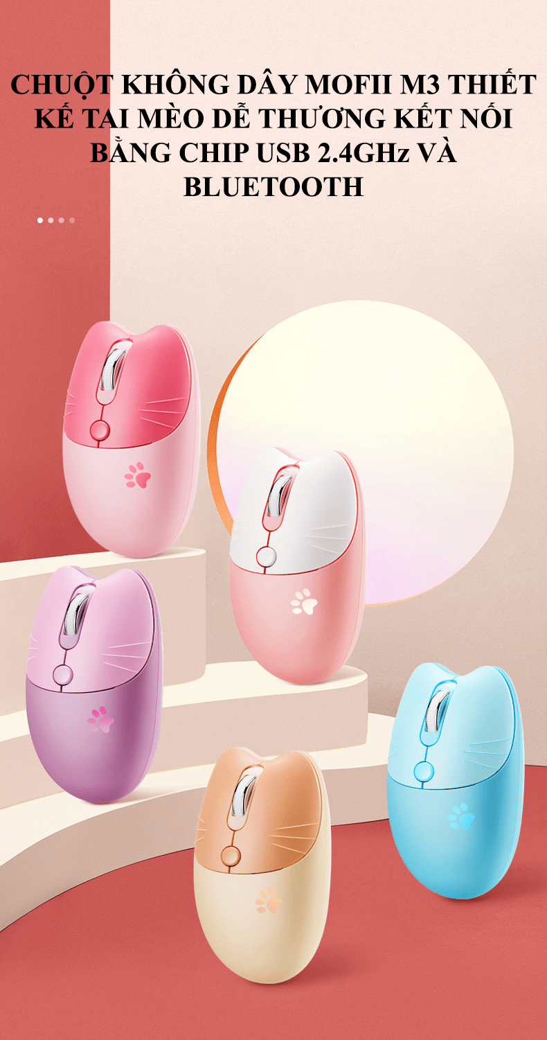 Chuột không dây M3 thiết kế tai mèo kết nối bằng chip USB 2.4 và BLUETOOTH với điện thoại, ipad, máy tính,...