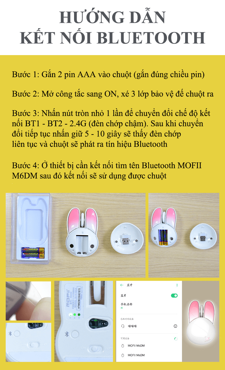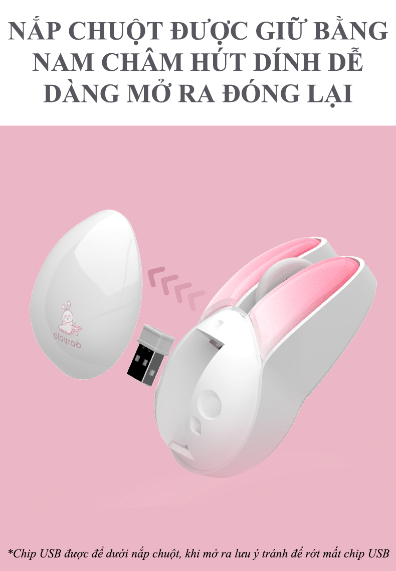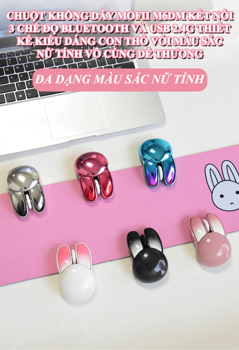 Chuột không dây M6DM thiết kế kiểu dáng con thỏ kết nối bằng Bluetooth và USB 2.4G đa dàng màu sắc dành cho các bạn nữ