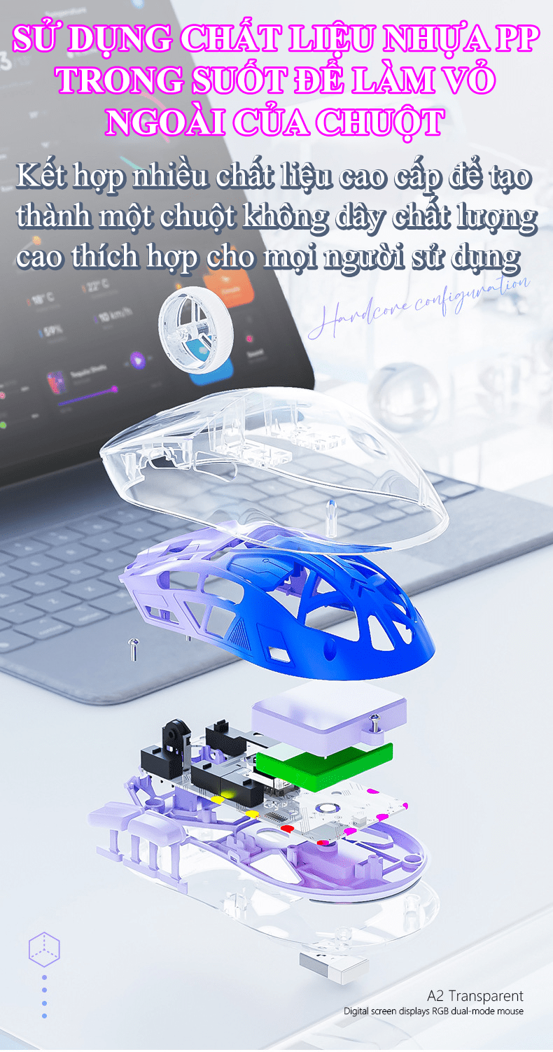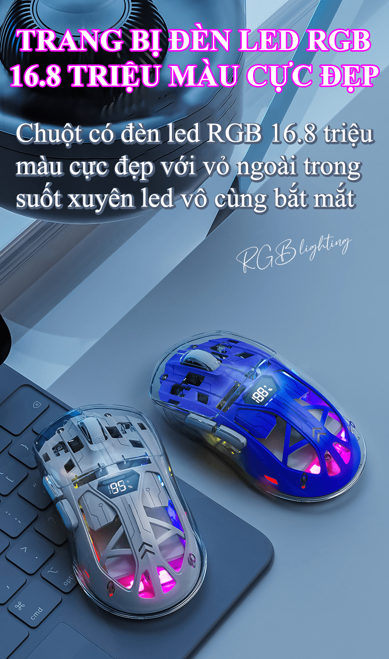 Tính năng nổi bật: chống mỏi tay, LED RGB, thiết kế trong suốt