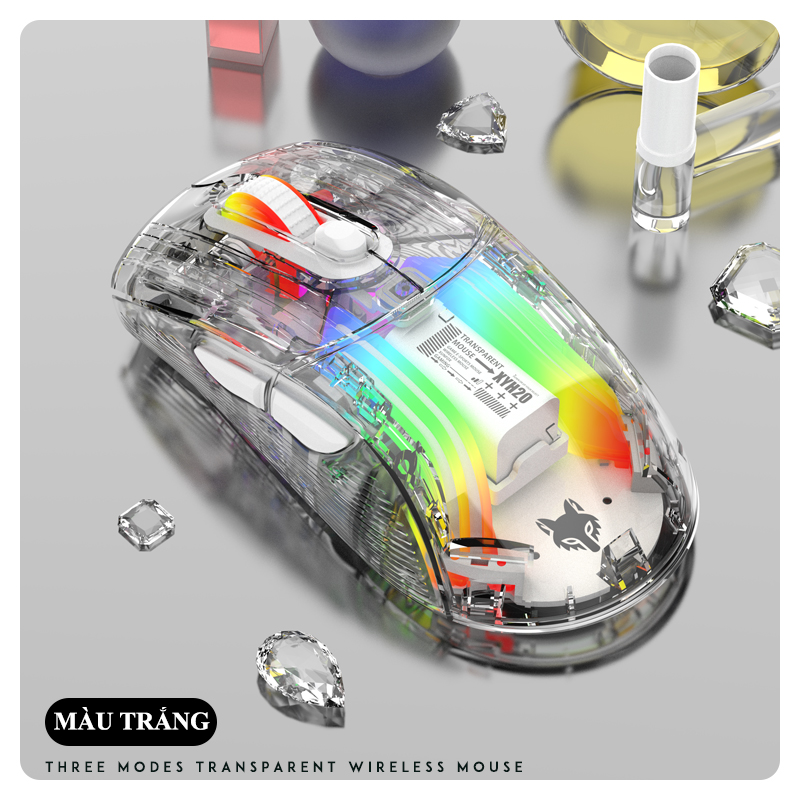 Chuột không dây XUNFOX XYH20 3 chế độ kết nối với thiết kế trong suốt mới lạ kèm theo nhiều chế độ đèn led RGB