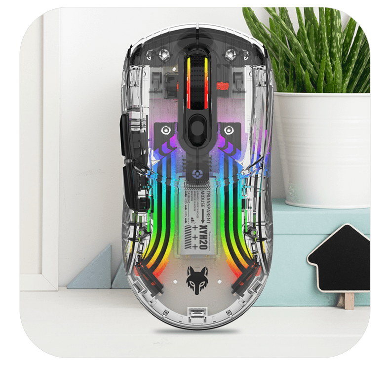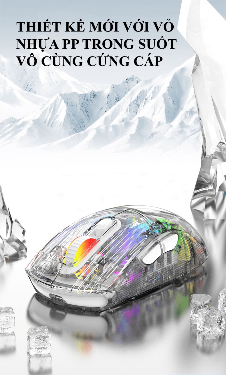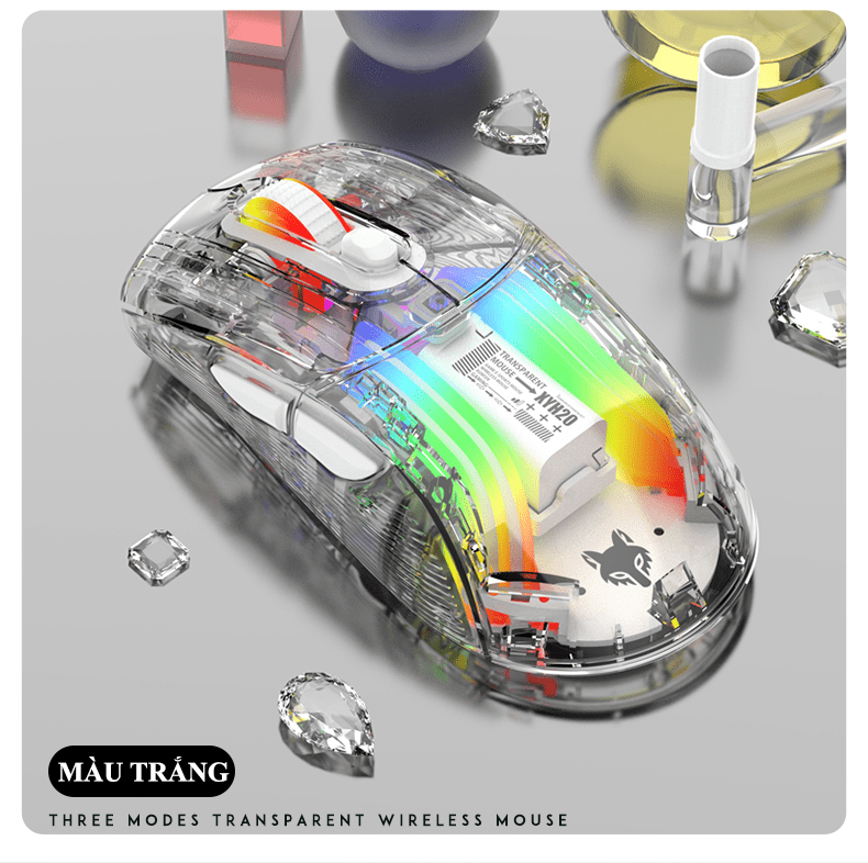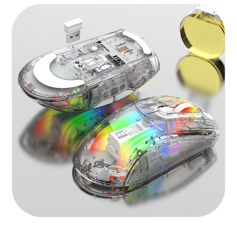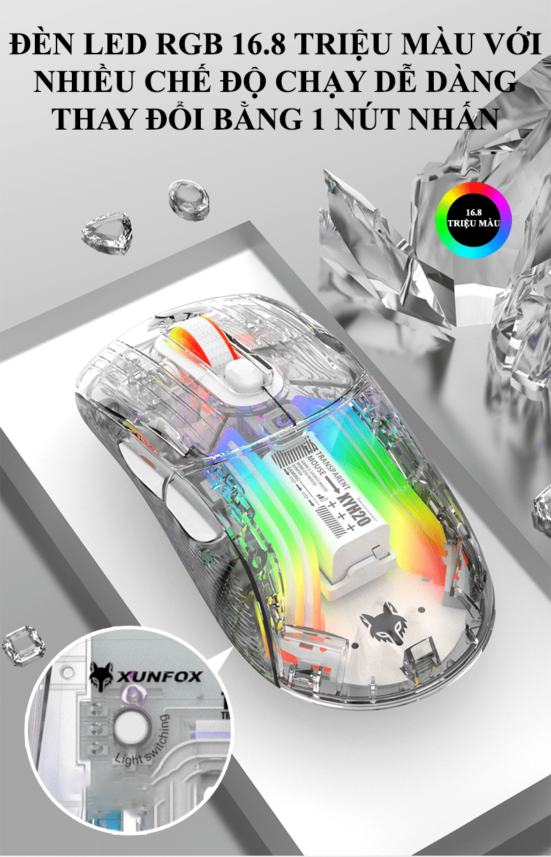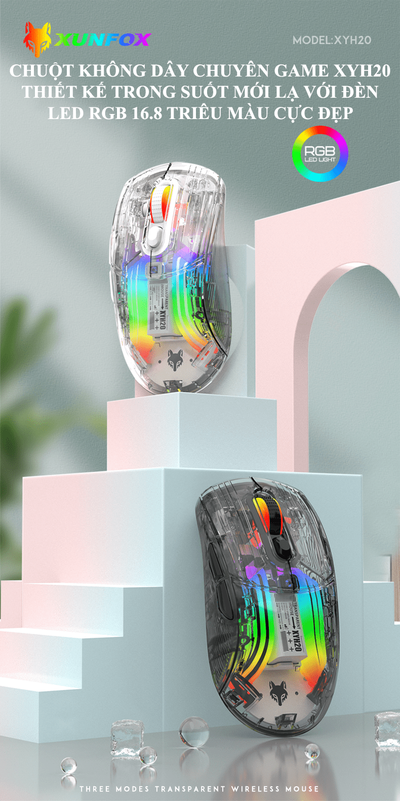 Chuột không dây XUNFOX XYH20 3 chế độ kết nối với thiết kế trong suốt mới lạ kèm theo nhiều chế độ đèn led RGB