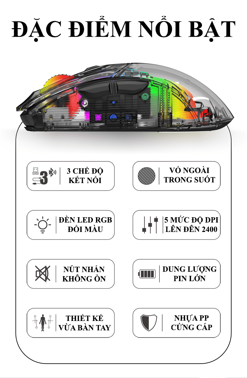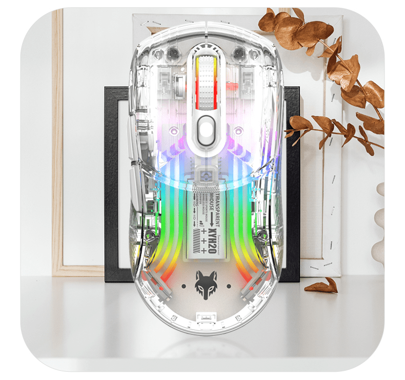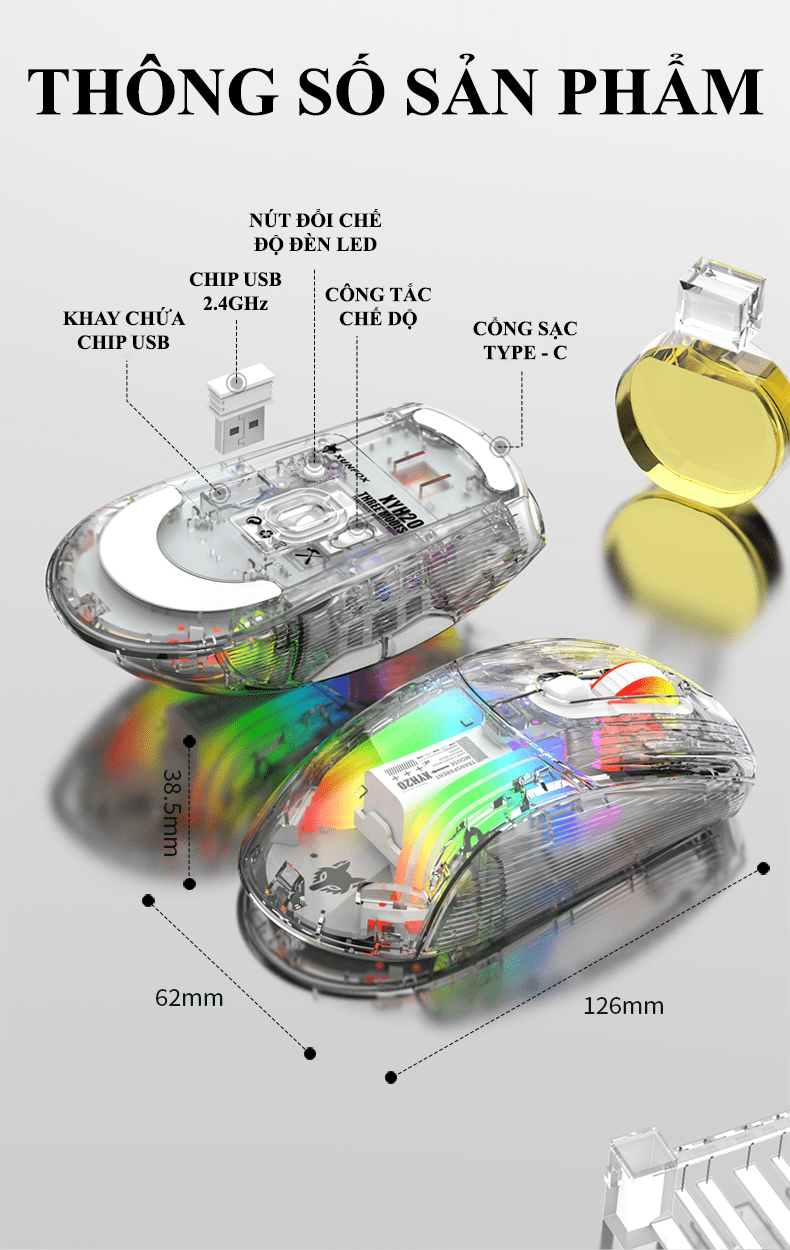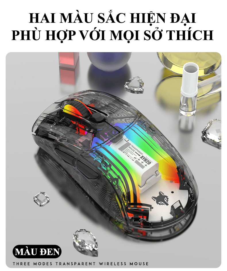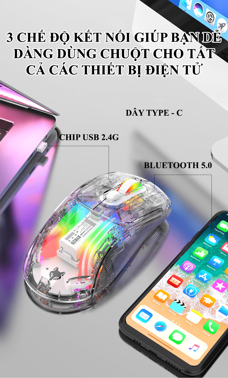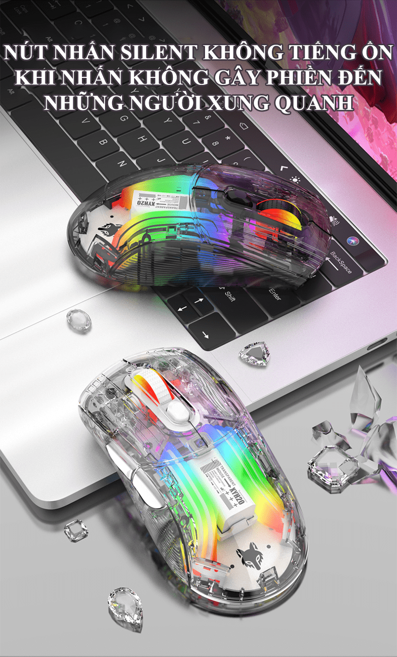 Chuột không dây XUNFOX XYH20 3 chế độ kết nối với thiết kế trong suốt mới lạ kèm theo nhiều chế độ đèn led RGB