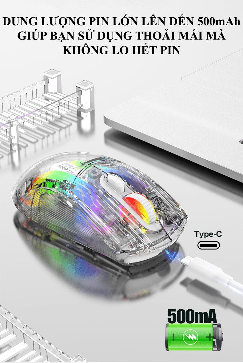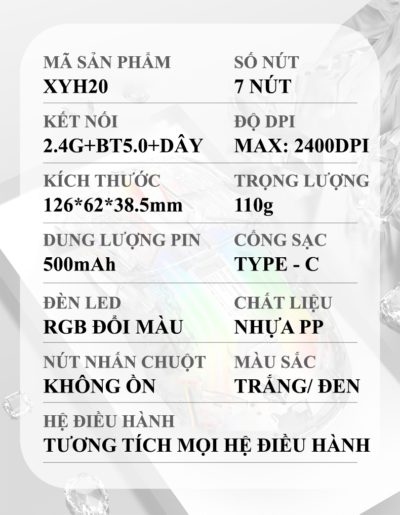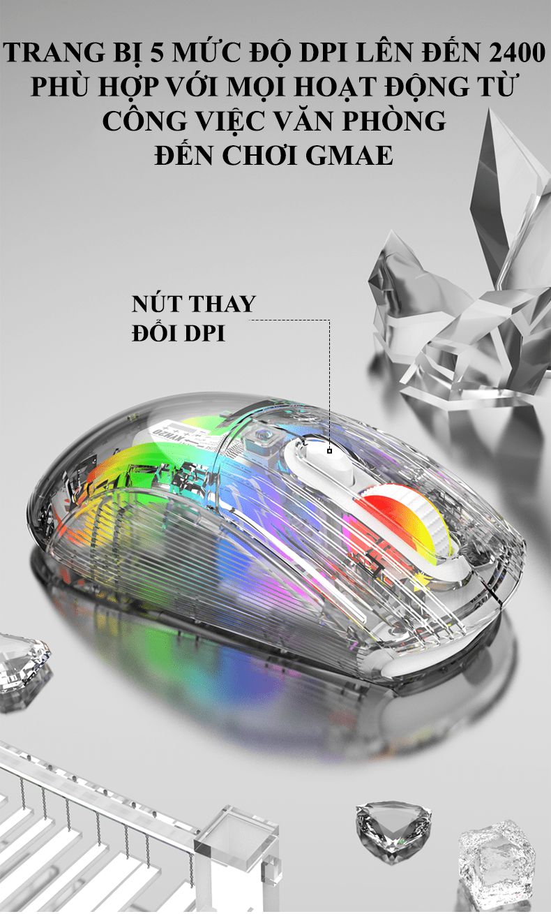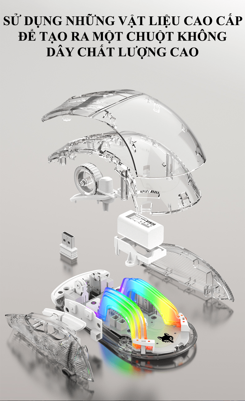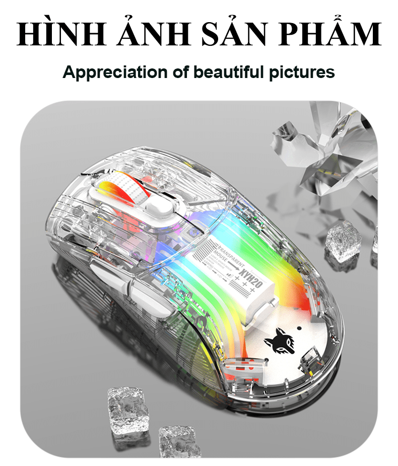 Chuột không dây XUNFOX XYH20 3 chế độ kết nối với thiết kế trong suốt mới lạ kèm theo nhiều chế độ đèn led RGB