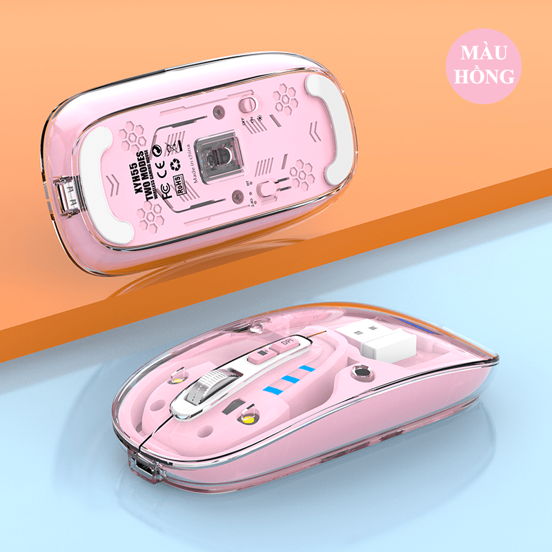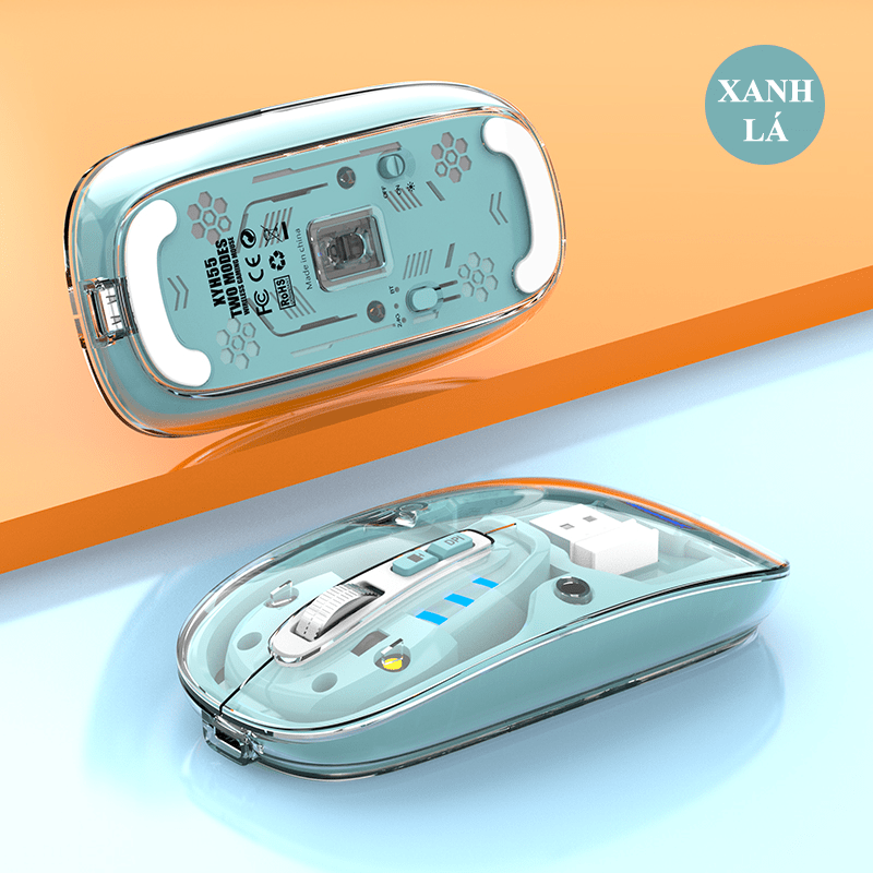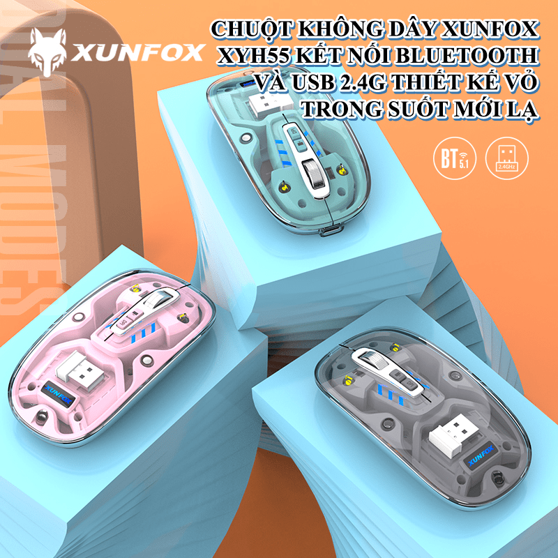 Chuột không dây XUNFOX XYH55 thiết kế vỏ ngoài trong suốt độc đáo kết nối BLUETOOTH và USB 2.4G