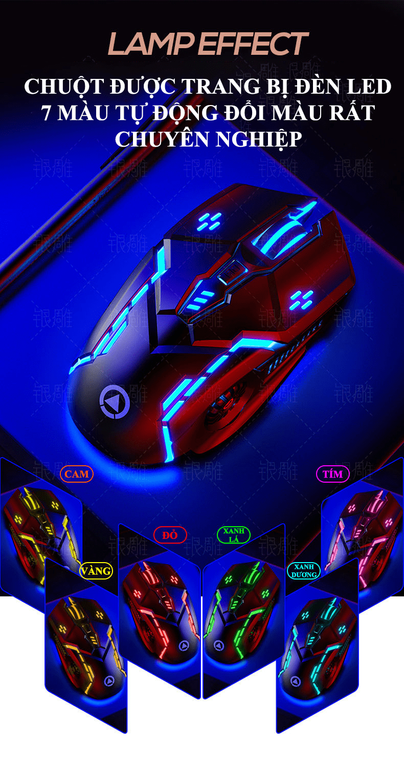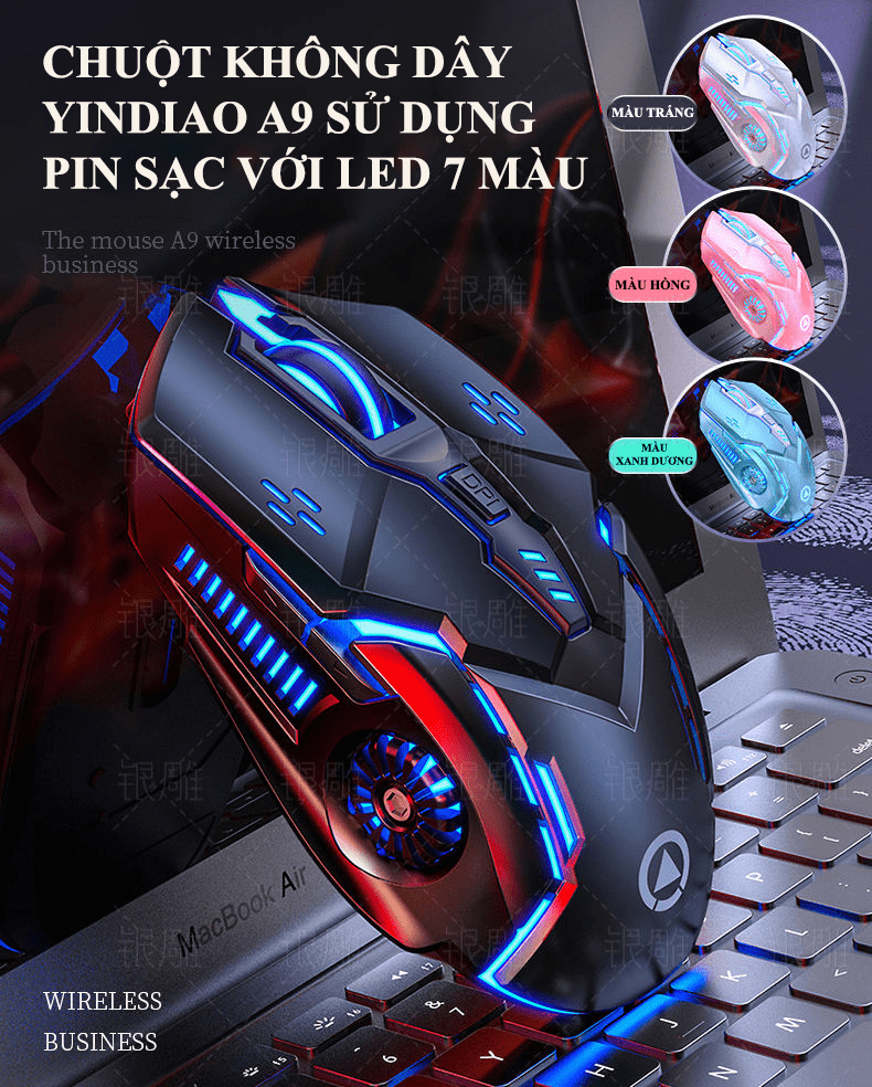 Chuột không dây YINDIAO A9 sử dụng pin sạc có đèn led 7 màu với 4 mức độ DPI lên đến 3200