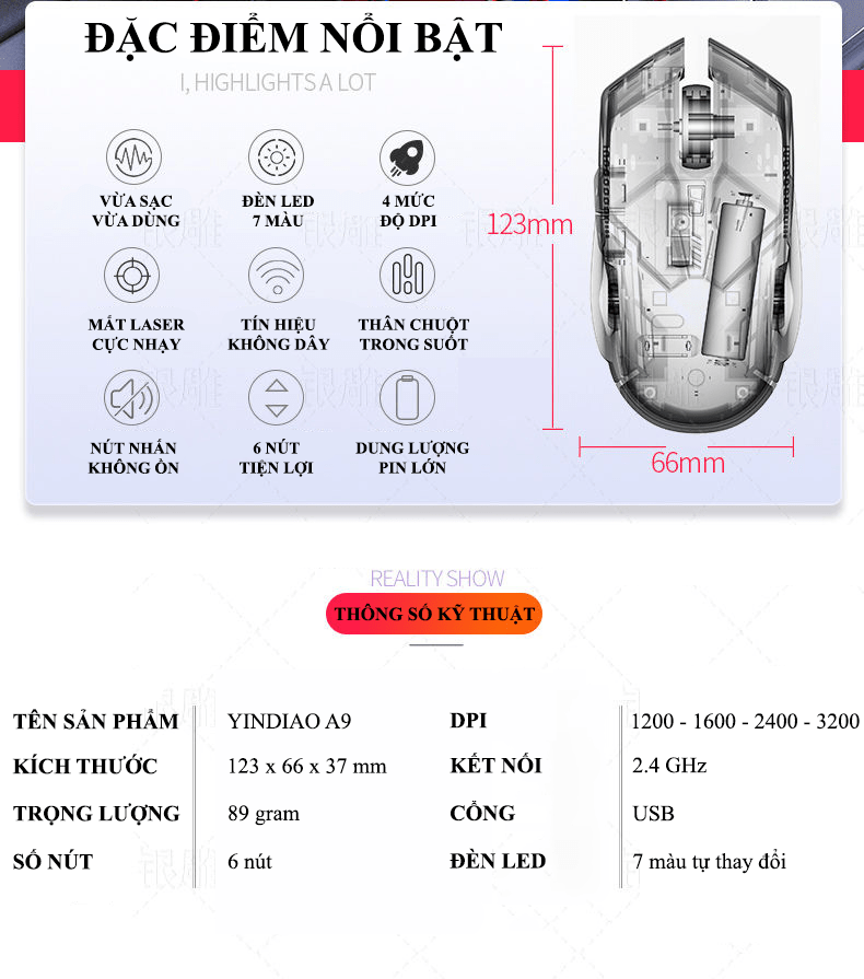 [VIDEO] Chuột không dây YINDIAO A9 sử dụng pin sạc có đèn led 7 màu với 4 mức độ DPI lên đến 3200