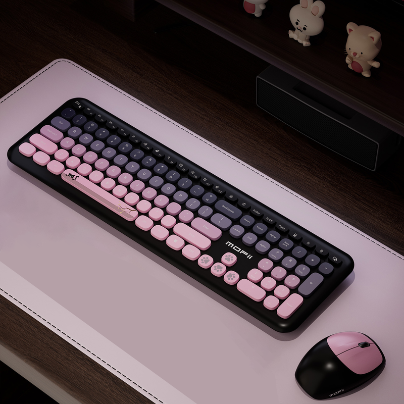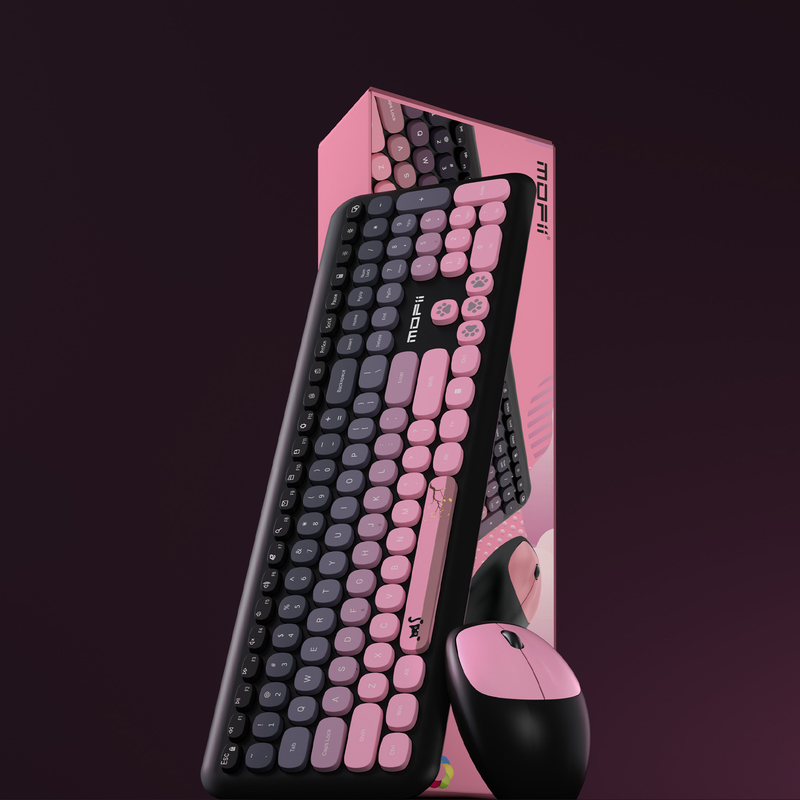 Combo bàn phím và chuột không dây 666 ĐEN HỒNG thiết kế hiện đại đa dạng màu sắc kết nối bằng chip USB 2.4GHz