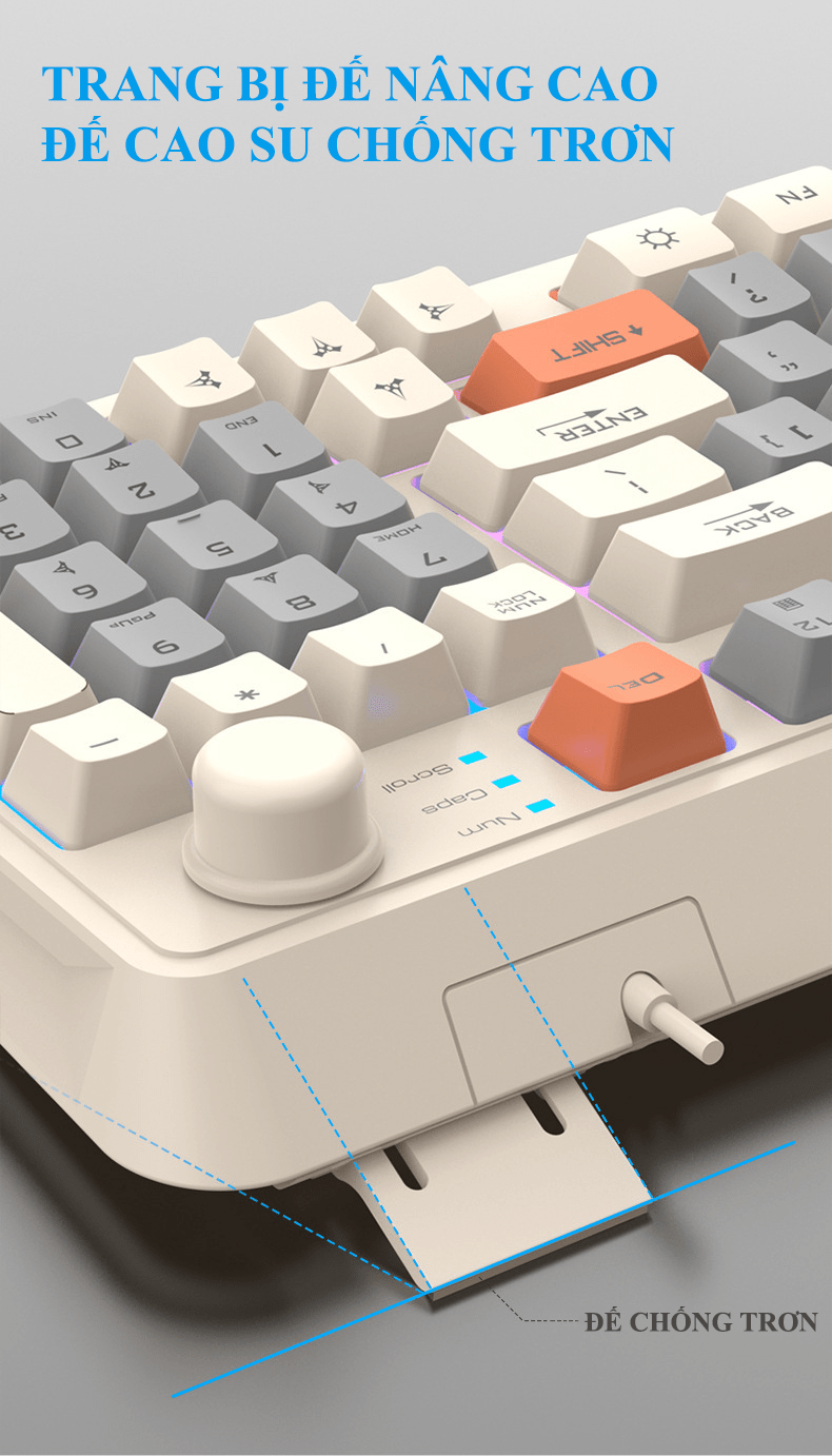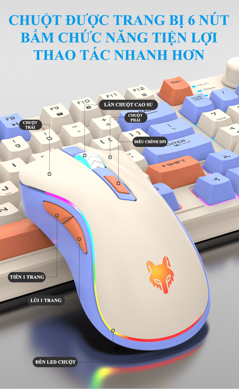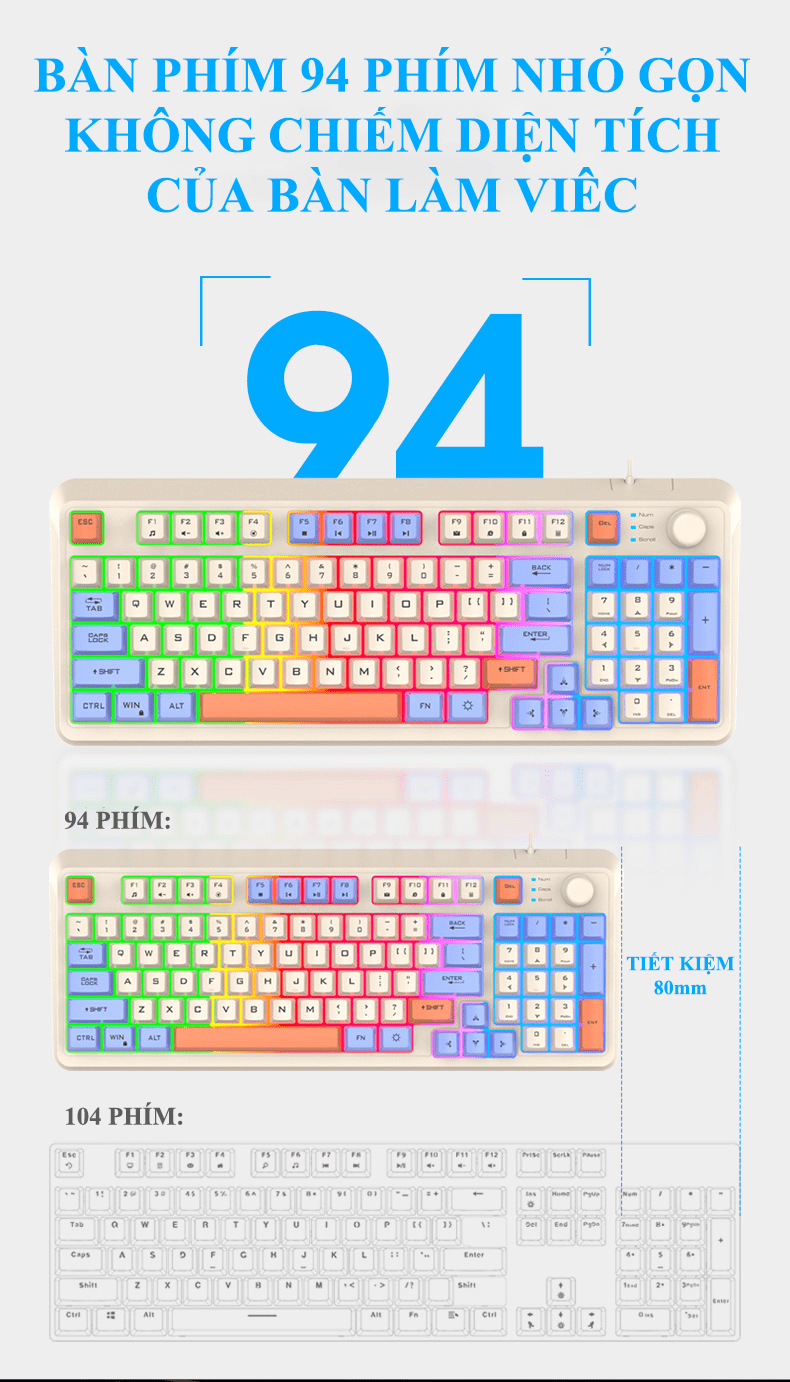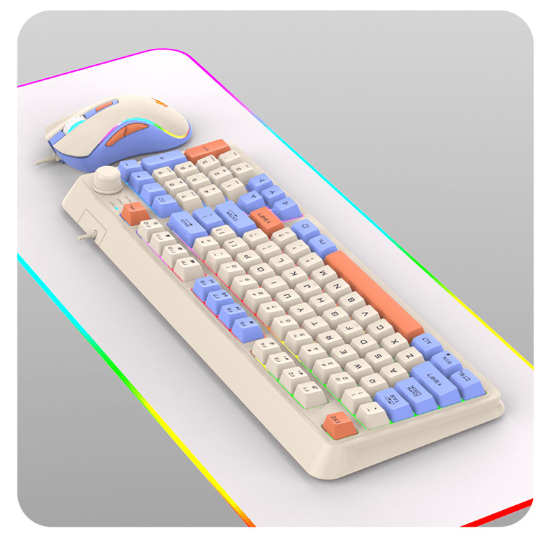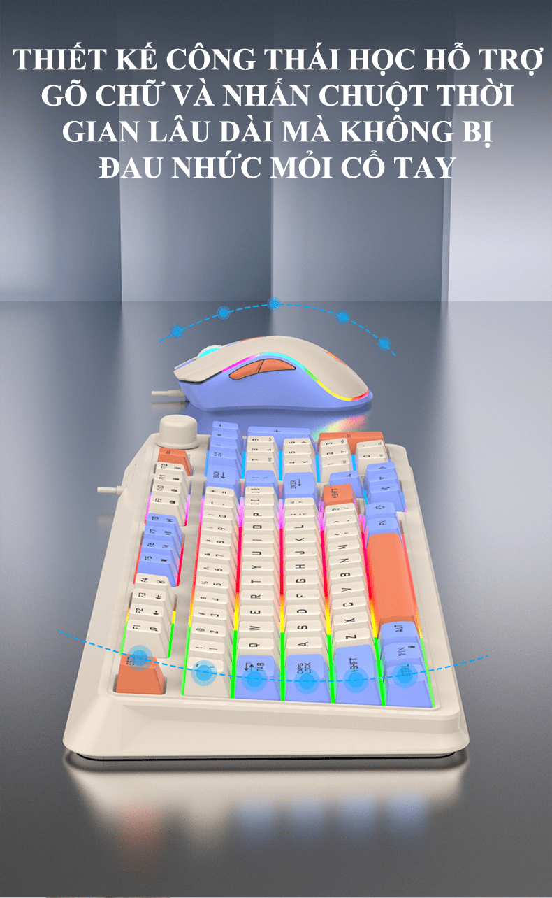 Combo phím chuột có dây XUNFOX K820 thiết kế 94 phím có nút vặn âm lượng tiện lợi kèm theo đèn led 7 màu cực đẹp