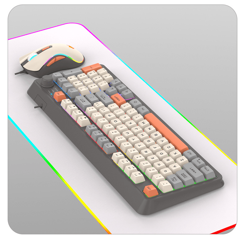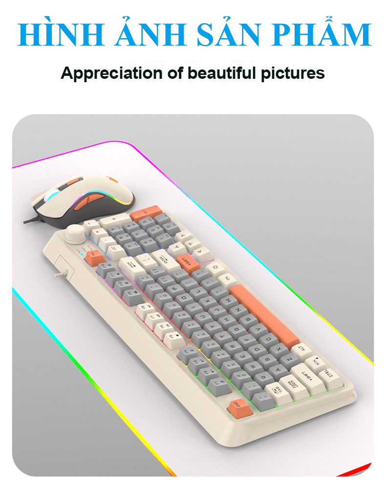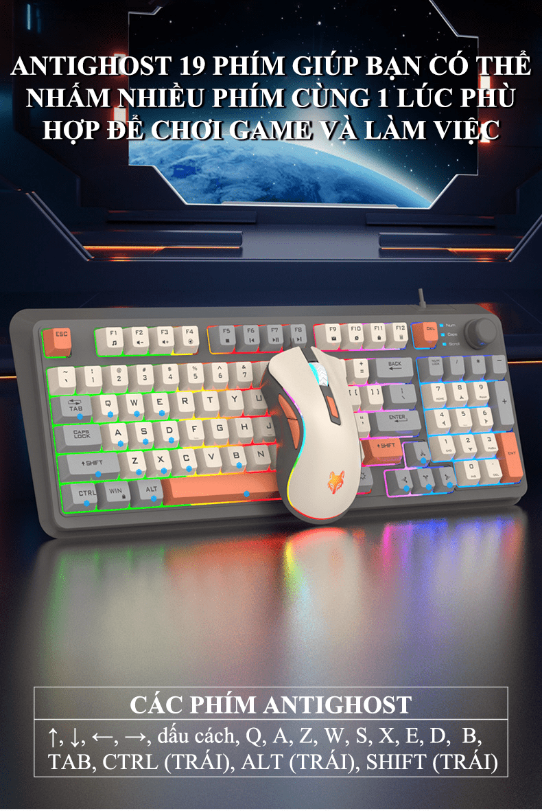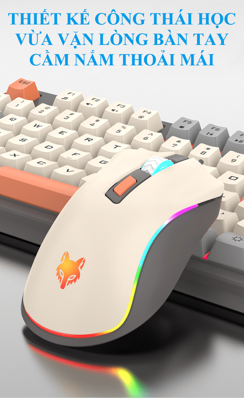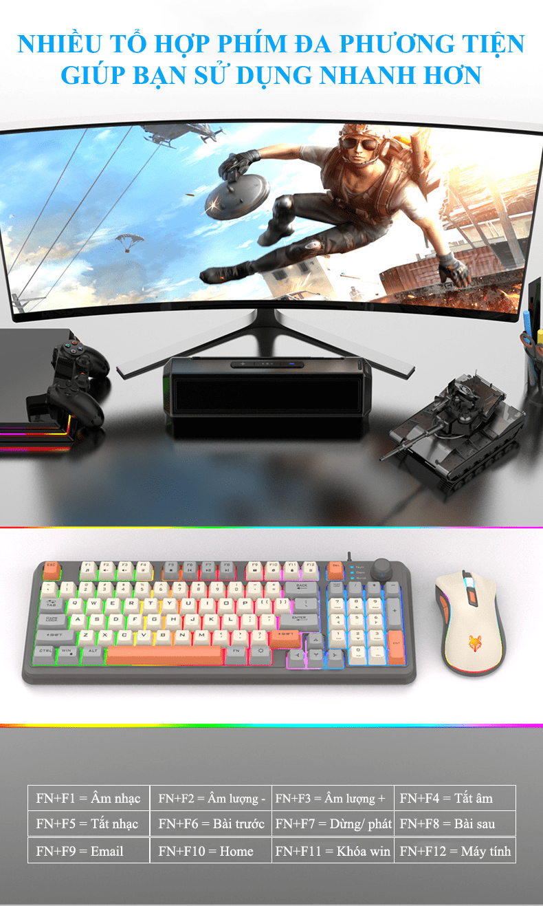 Combo phím chuột có dây XUNFOX K820 thiết kế 94 phím có nút vặn âm lượng tiện lợi kèm theo đèn led 7 màu cực đẹp
