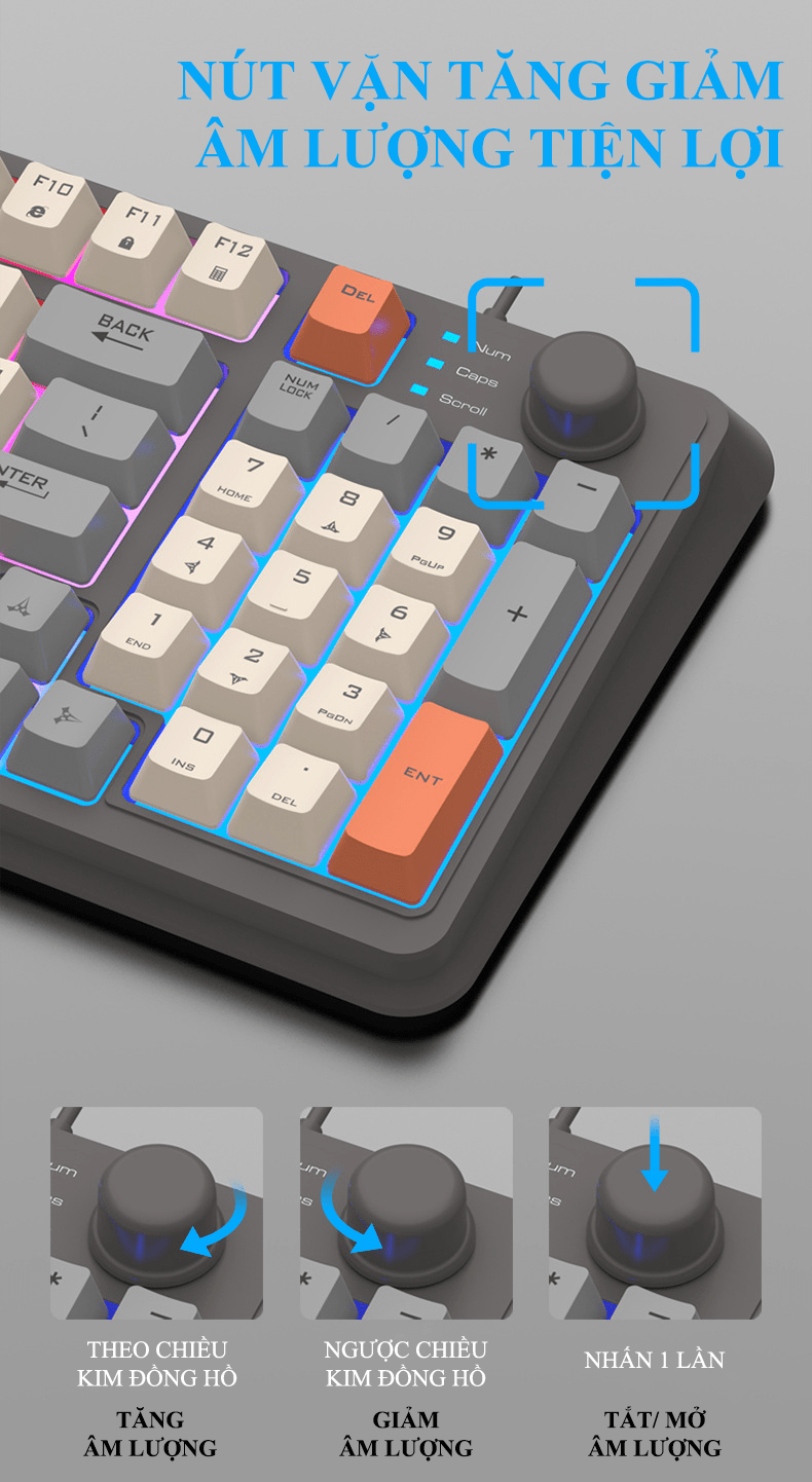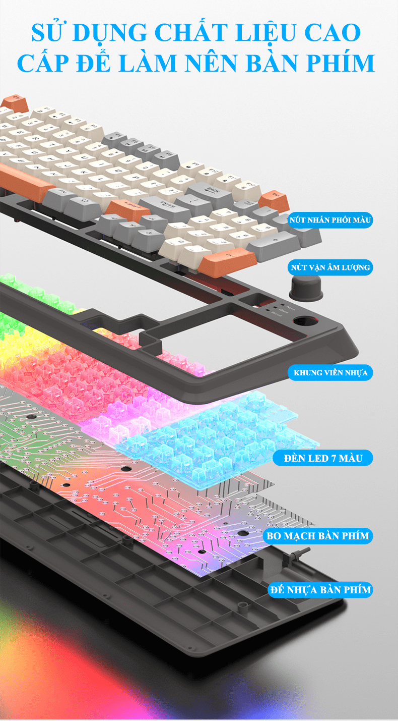 Đèn led nền và led phím với 7 màu và tắt mở, chớp nháy.