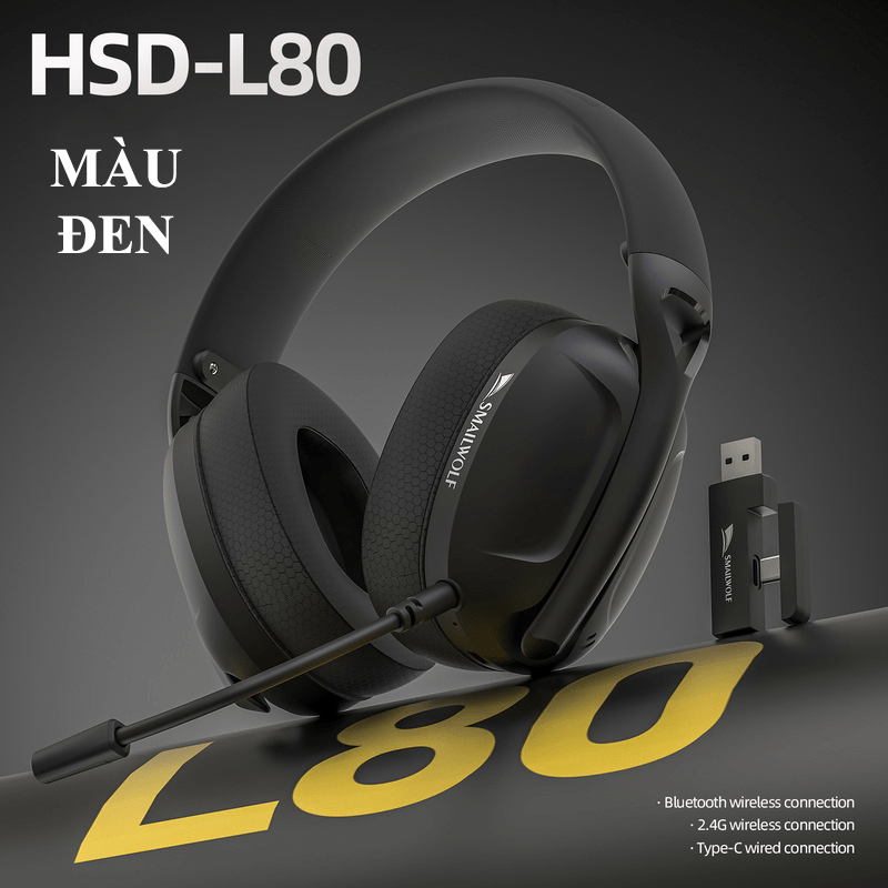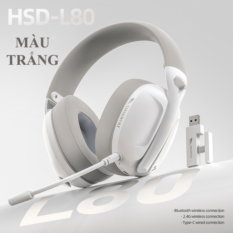 Tai nghe không dây SMAILWOLF L80 thế hệ mới kết nối 3 chế độ Bluetooth - 2.4G - Type-C với âm thanh 3D sống động kèm theo micro khử tiếng ồn hỗ trợ đàm thoại