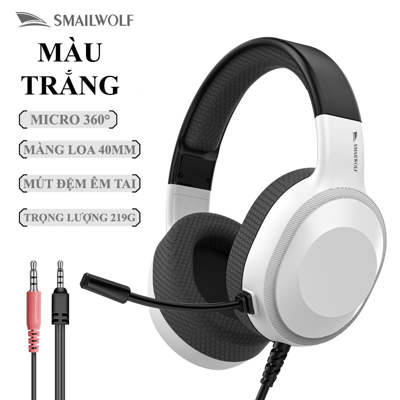 Tai nghe gaming SMAILWOLF AK5 ĐƠN SẮC kết nối bằng dây cổng 3.5mm âm thanh sống động kèm theo micro xoay 360°