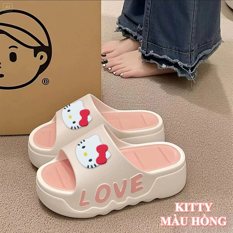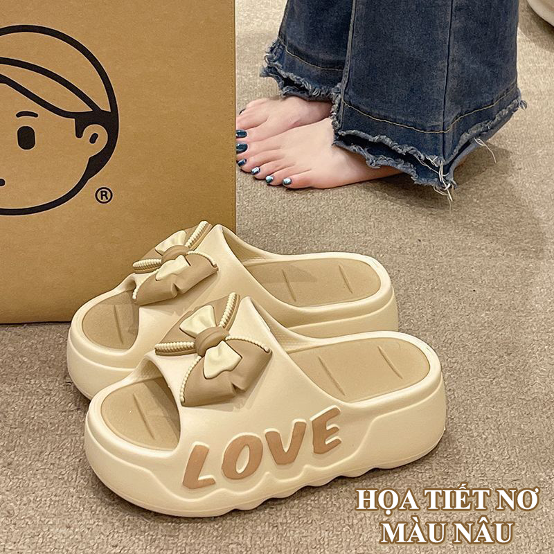 Dép quai ngang nữ G00056 thiết kế đế cao 4cm với họa tiết nơ chữ love dễ thương nữ tính