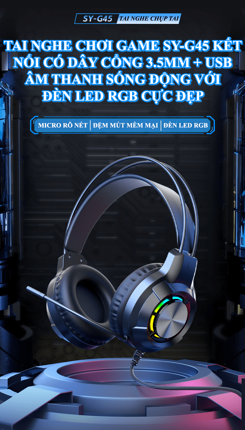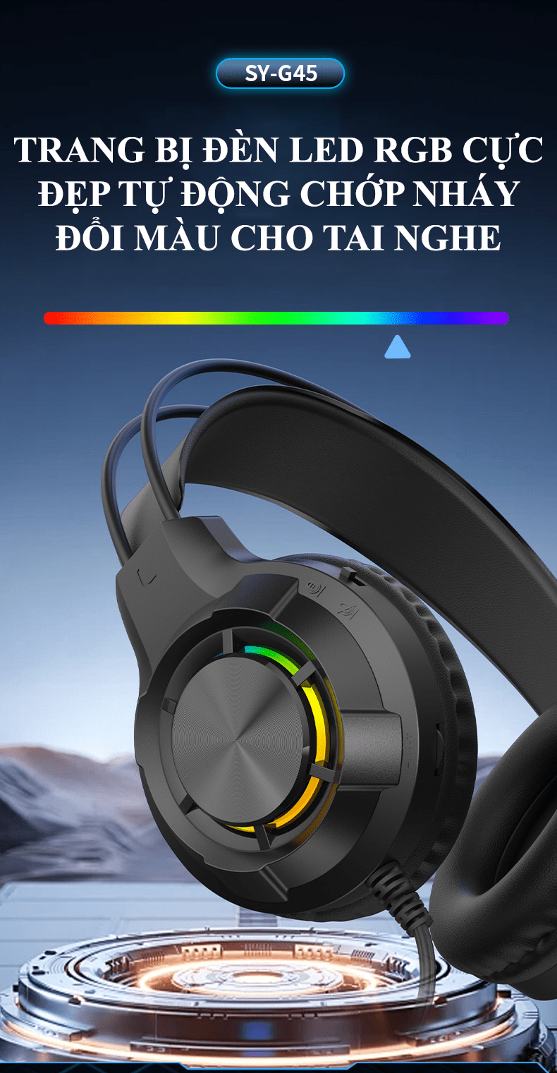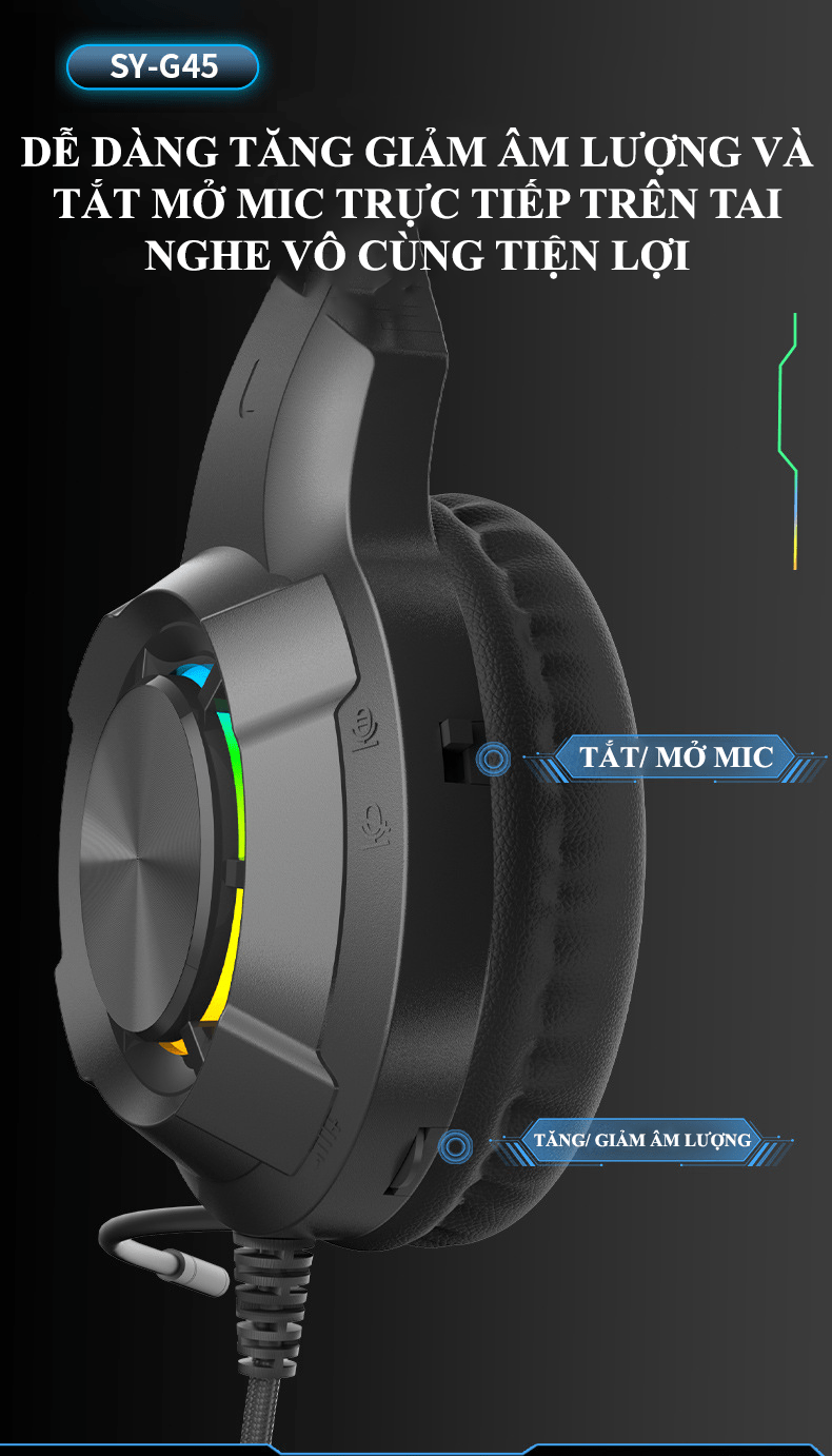 Tai nghe chơi game SY-G45 kết nối bằng dây cổng 3.5mm + USB có đèn led RGB tự động đổi màu cực đẹp dành cho game thủ