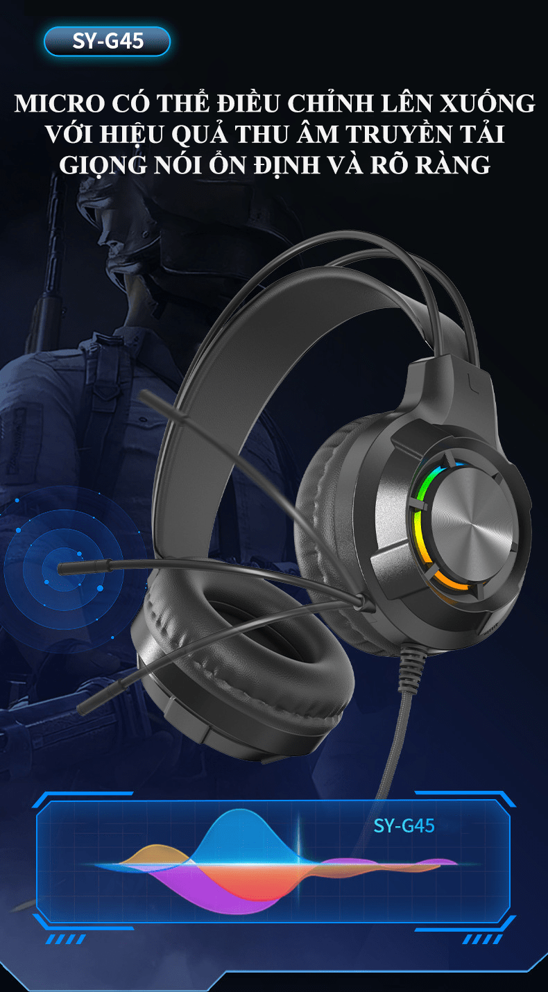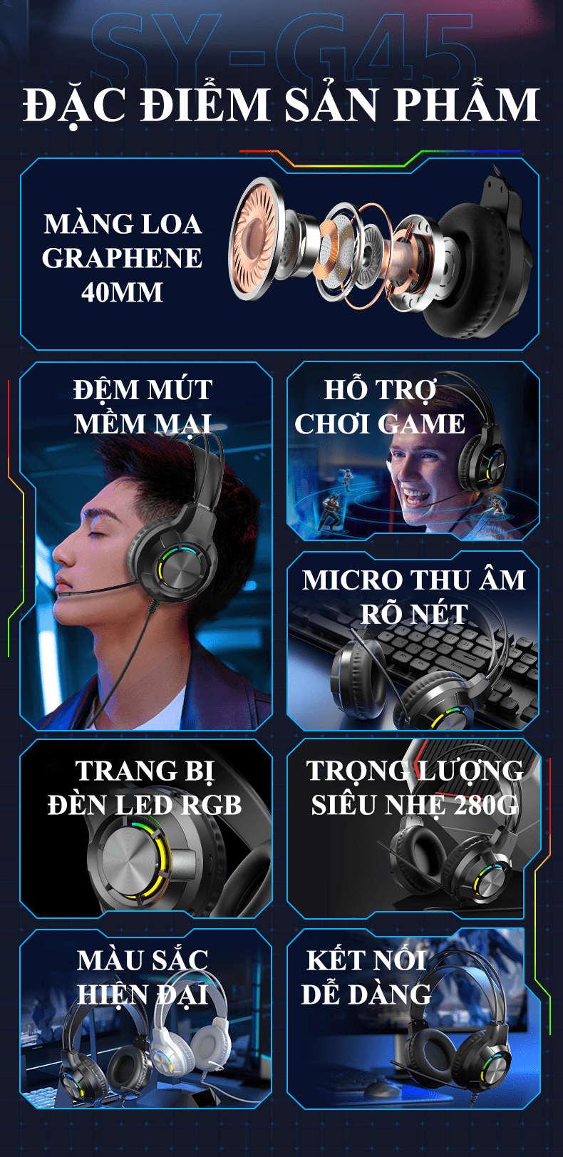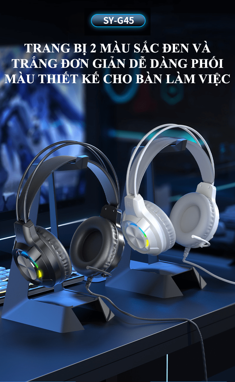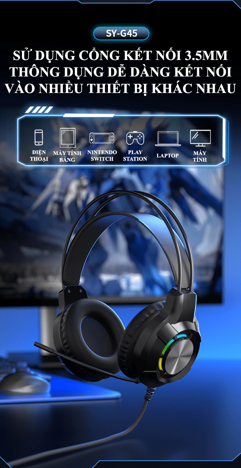 Tai nghe chơi game SY-G45 kết nối bằng dây cổng 3.5mm + USB có đèn led RGB tự động đổi màu cực đẹp dành cho game thủ