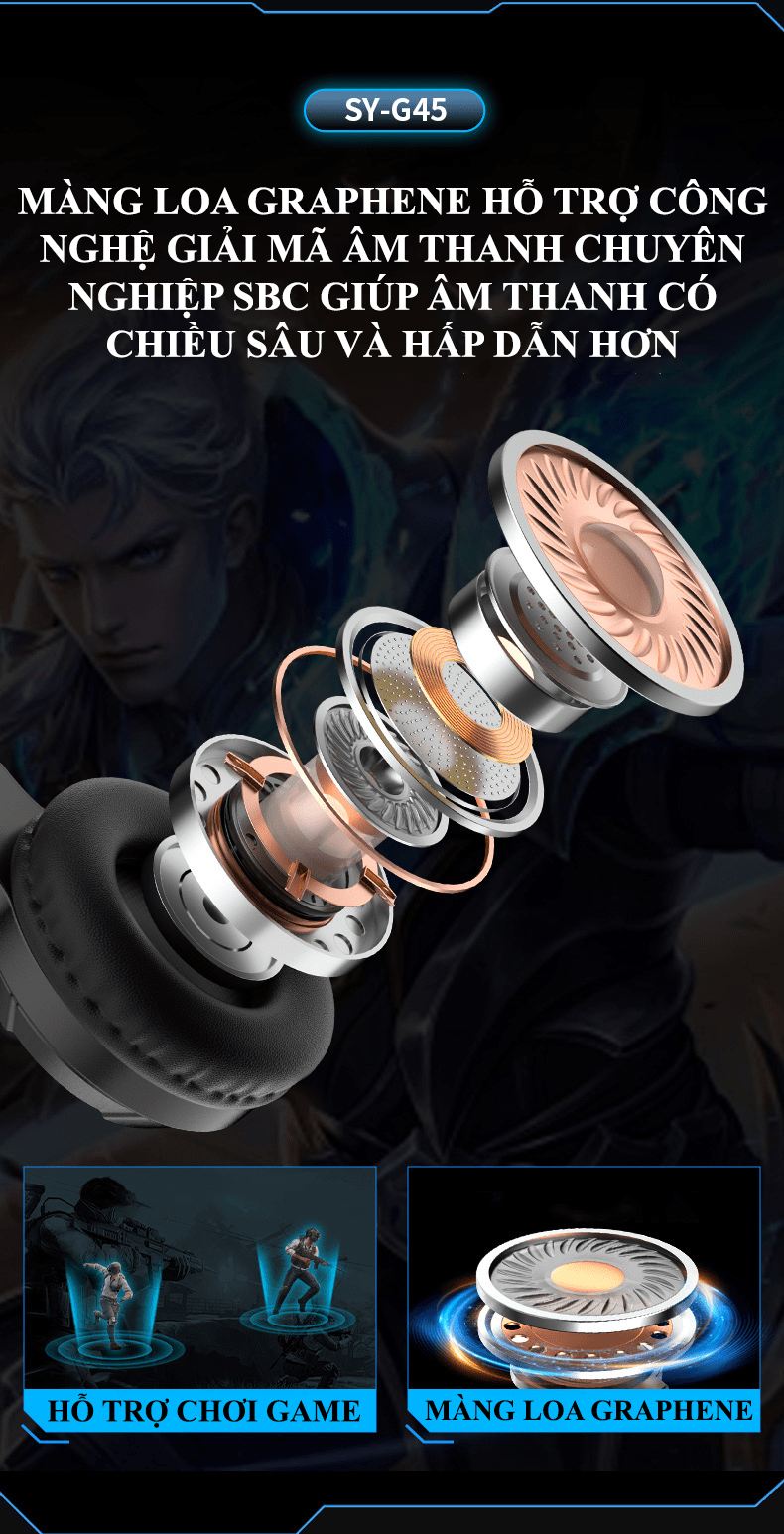 - Thiết kế tai nghe SY-G45 phù hợp với nhiều loại dàn máy chơi game khác nhau. Với vẻ ngoài vừa hiện đại, năng động và thời trang, giúp các game thủ có thể dễ dàng Setup tai nghe của mình Ton sur ton với dàn máy chơi game.