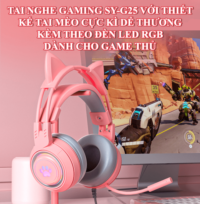 Tai nghe gaming SY-G25 với thiết kế tai mèo cực kì dễ thương có đèn led RGB dành cho game thủ