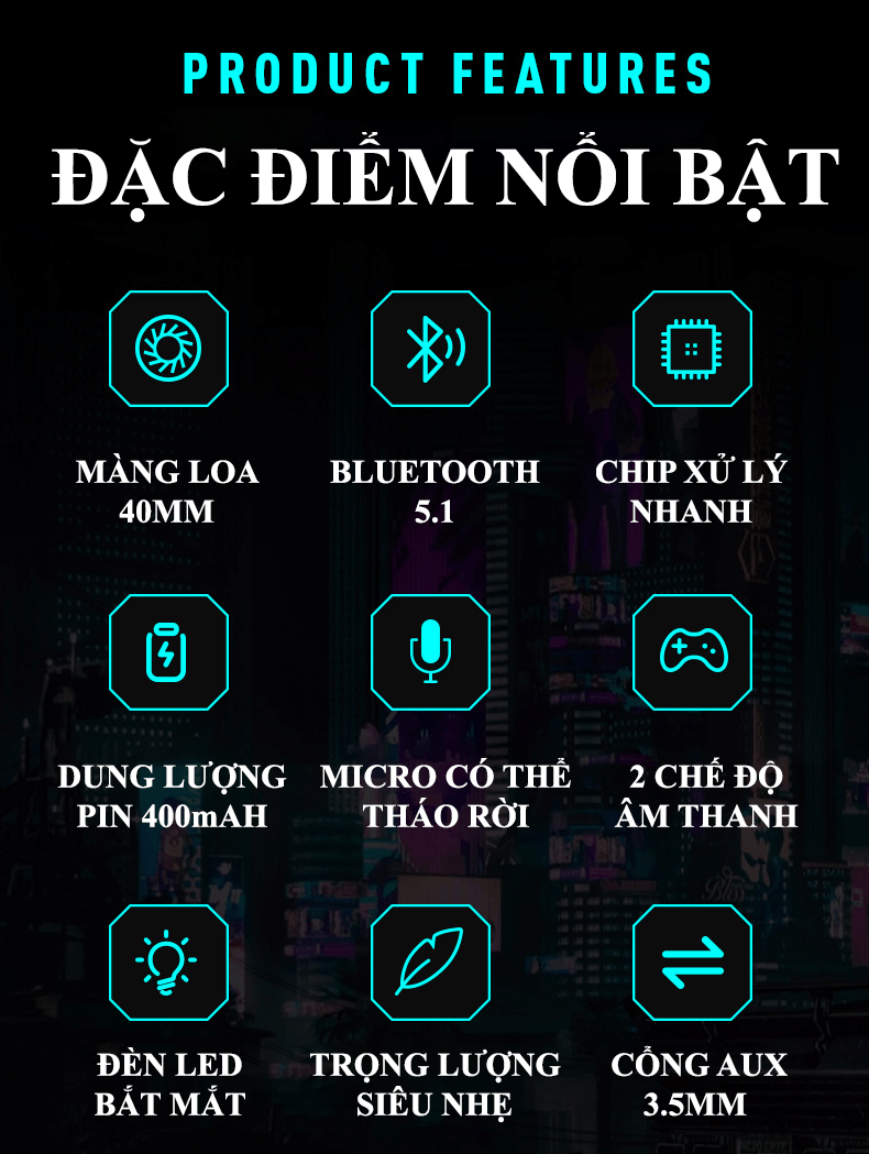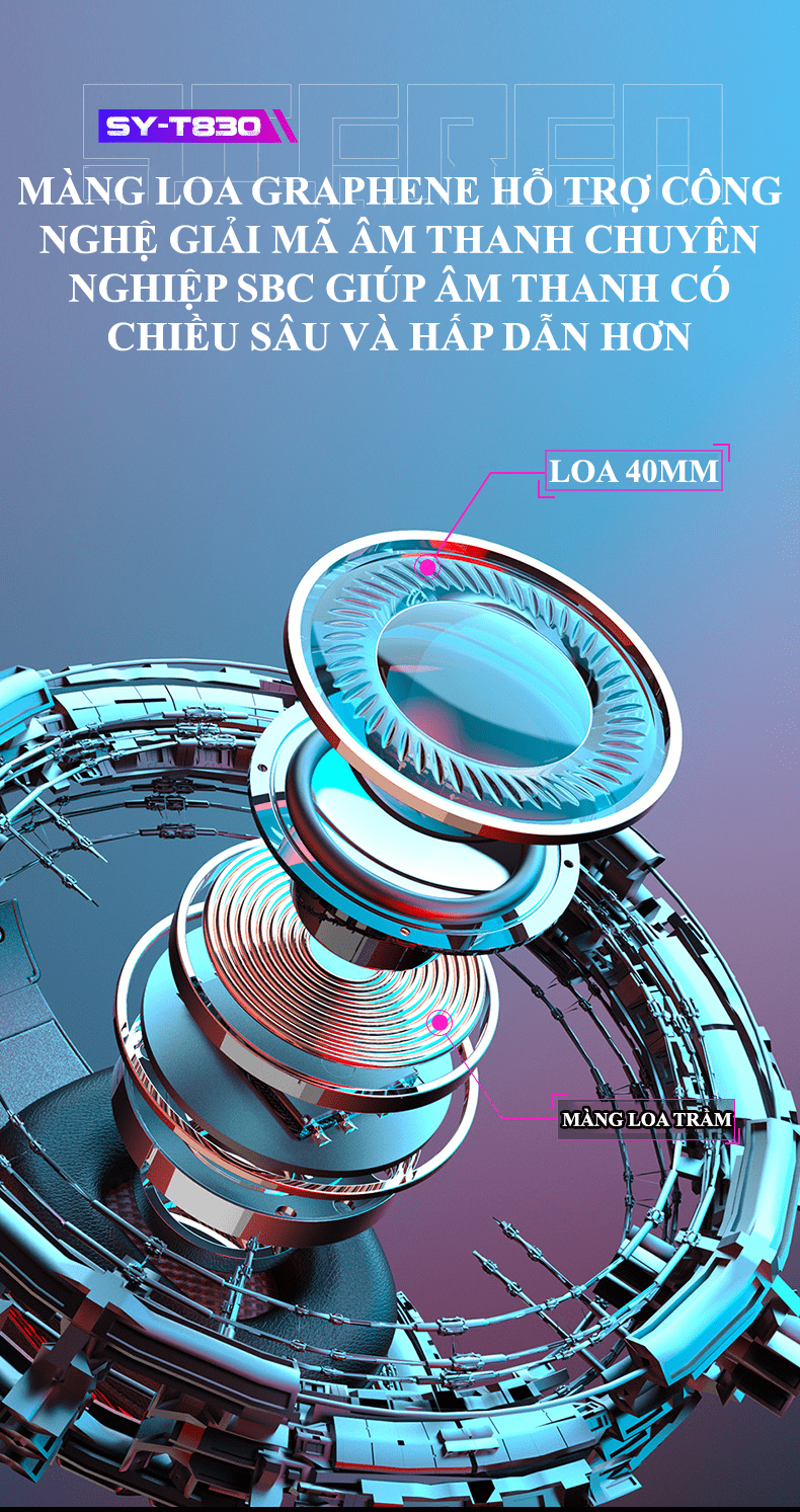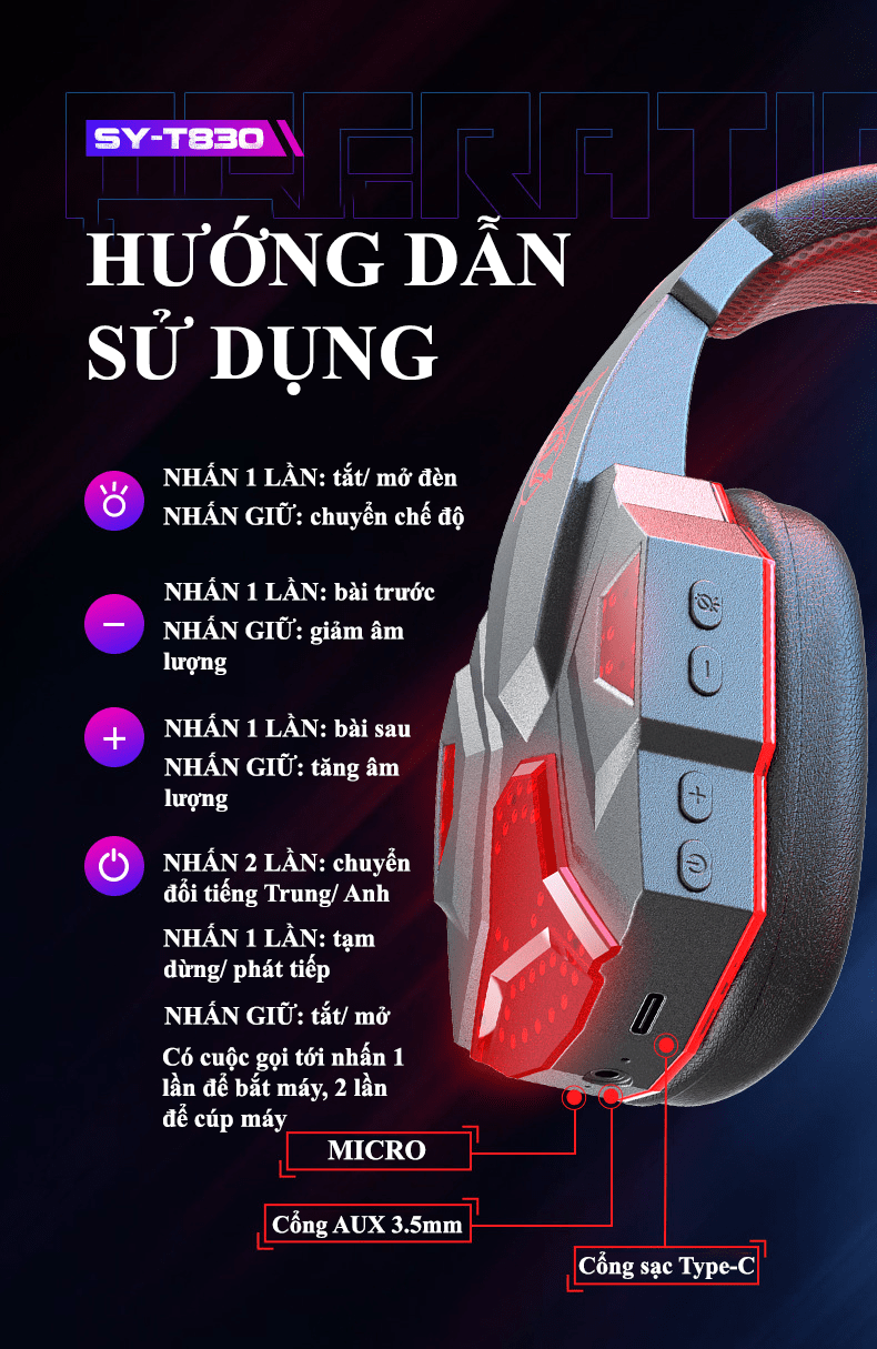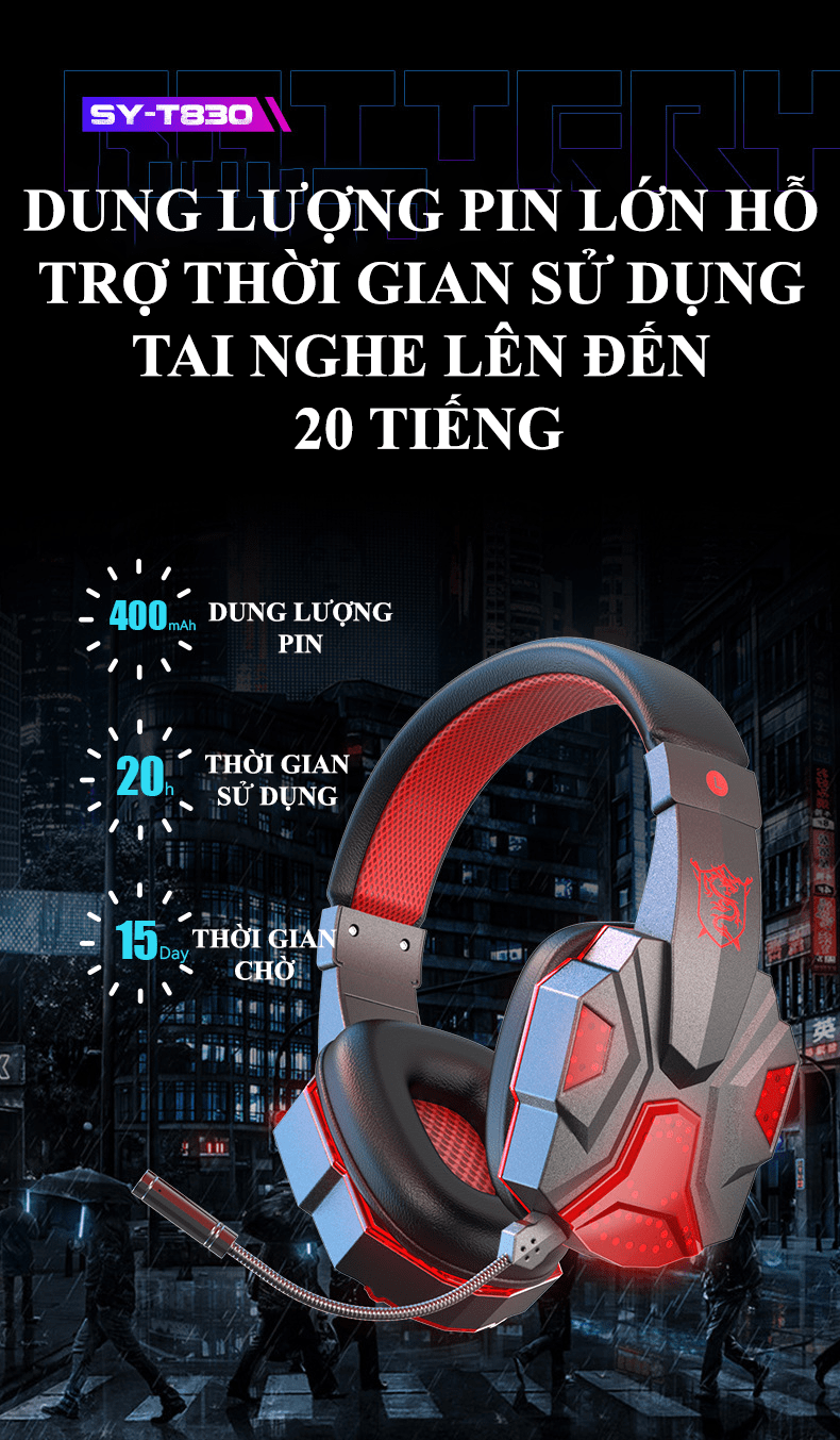 Tai nghe gaming SY-T830 kết nối bằng Bluetooth và cổng AUX 3.5mm có đèn led và âm thanh sống động phù hợp cho game thủ