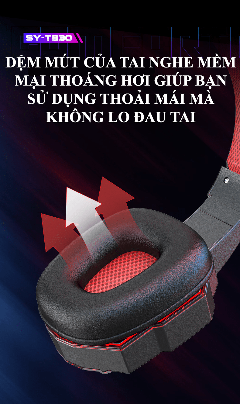 - Tai nghe có dây game thủ SY-T830 được thiết kế ôm khít mọi cỡ đầu và tạo được cảm giác dễ chịu trong một thời gian sử dụng dài.