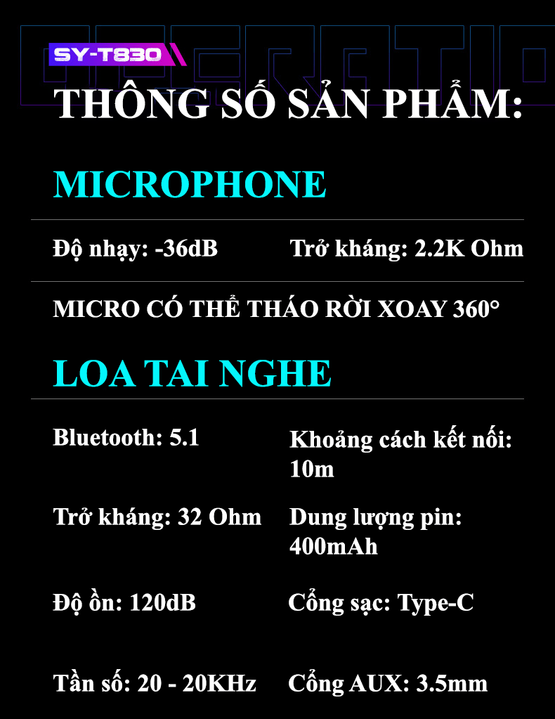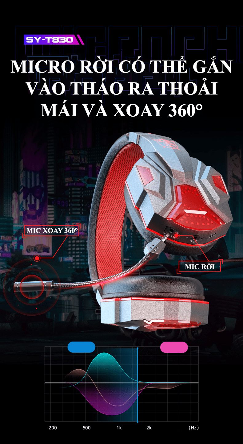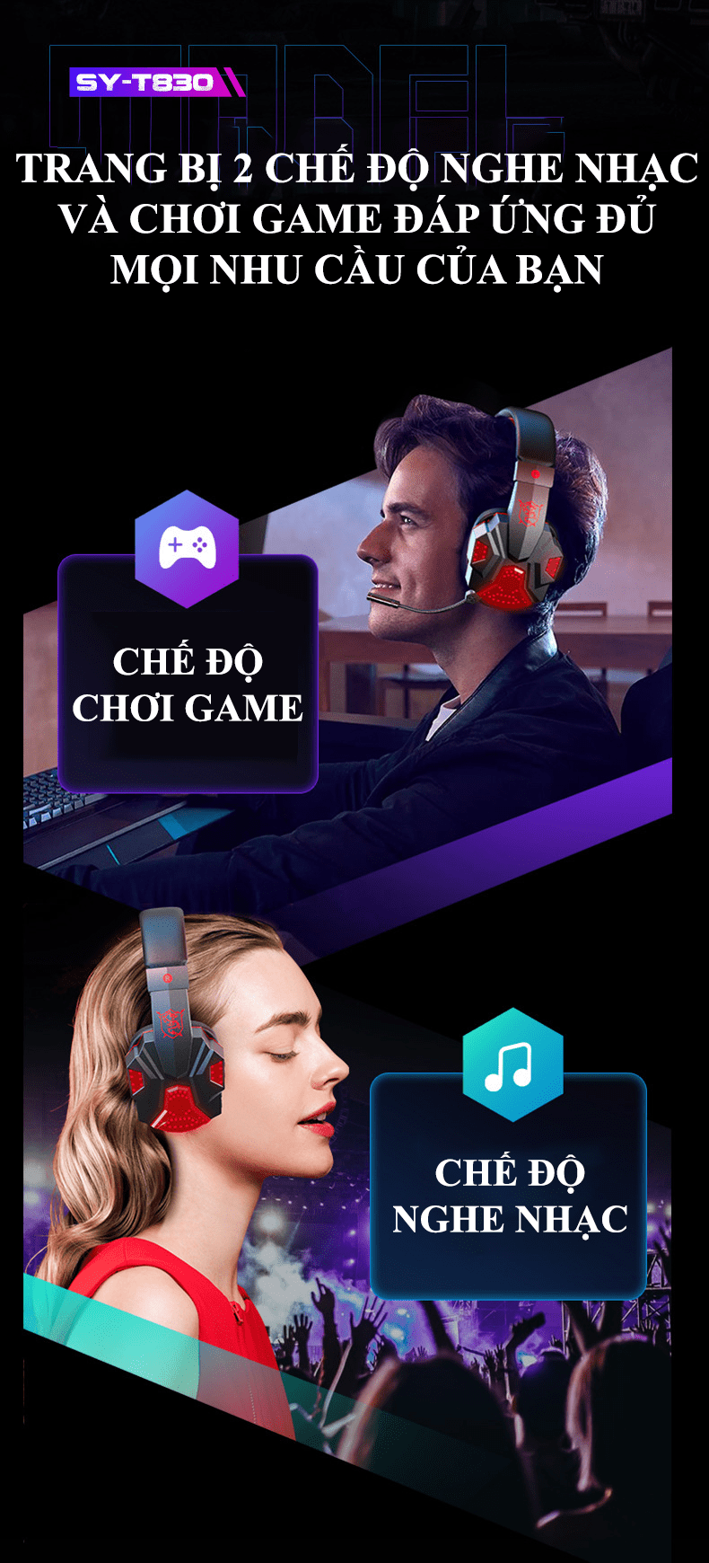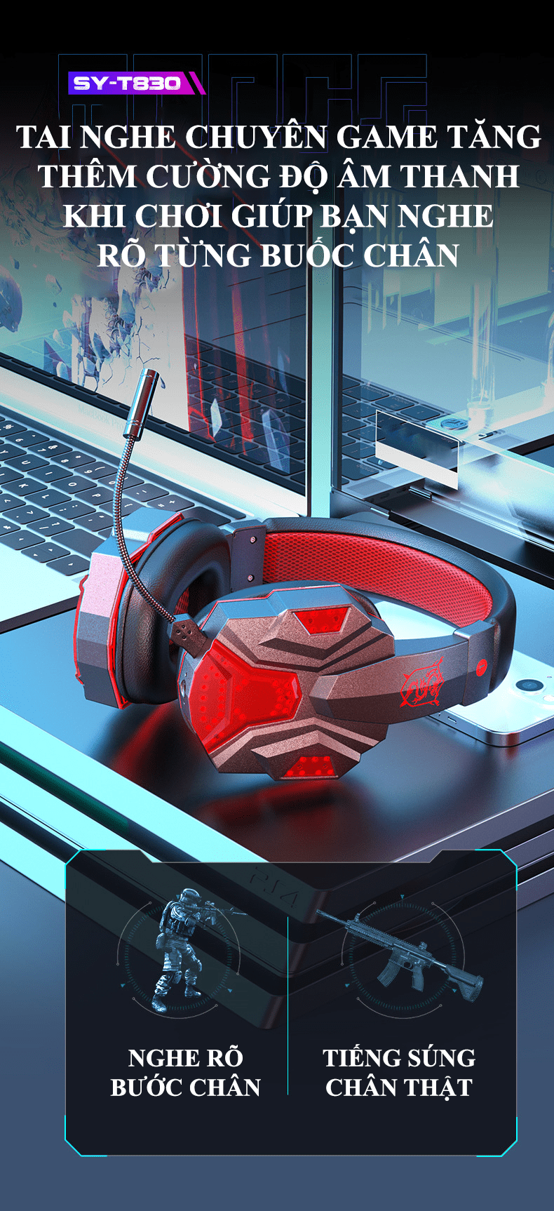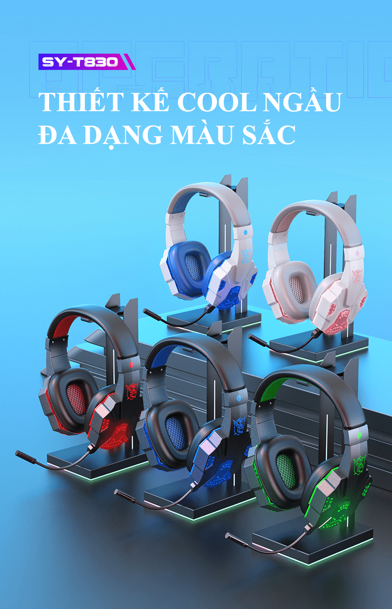 - Thiết kế tai nghe SY-T830 phù hợp với nhiều loại dàn máy chơi game khác nhau. Với vẻ ngoài vừa hiện đại, năng động và thời trang, giúp các game thủ có thể dễ dàng Setup tai nghe của mình Ton sur ton với dàn máy chơi game.