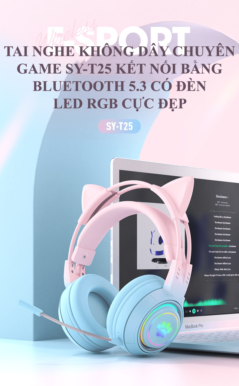 Tai nghe không dây chuyên game SY-T25 ĐƠN SẮC kết nối bằng Bluetooth 5.3 có đèn led RGB với màu sắc tai nghe cực đẹp
