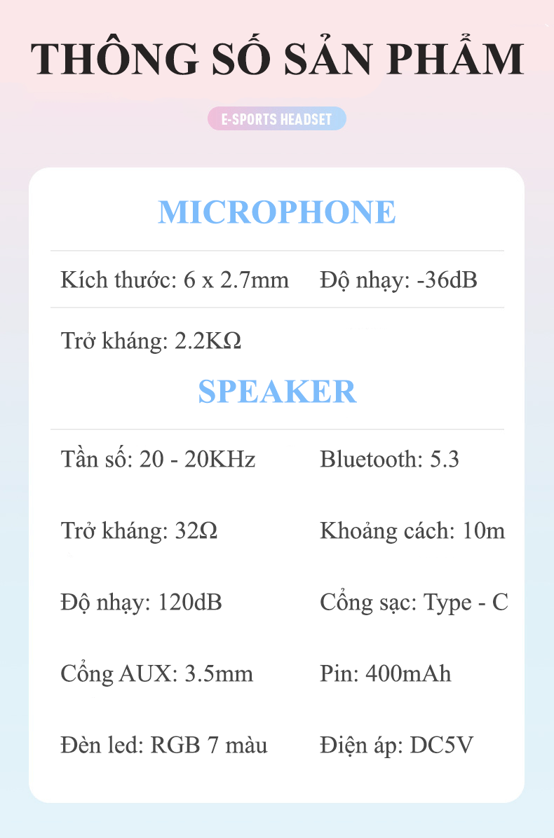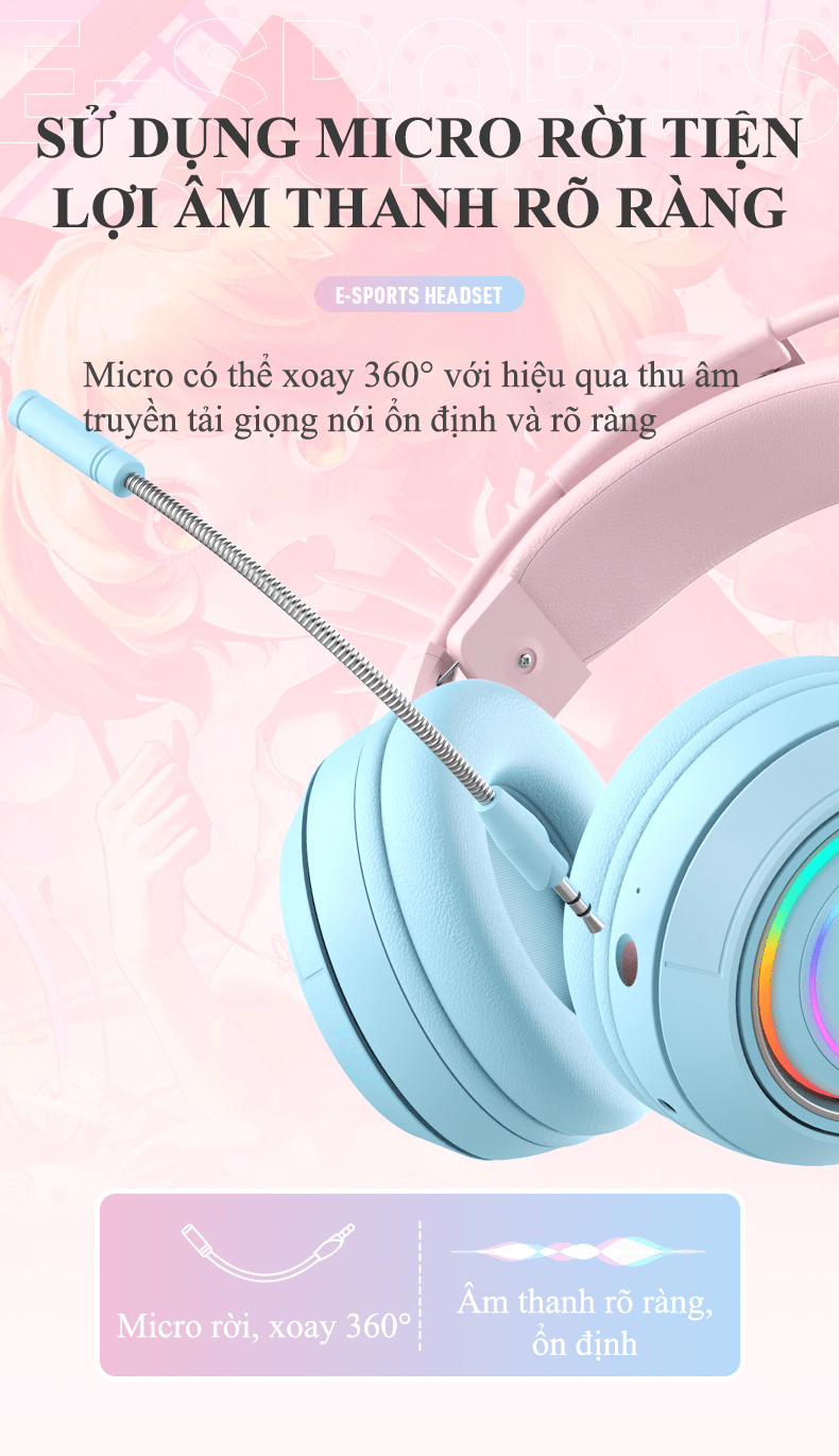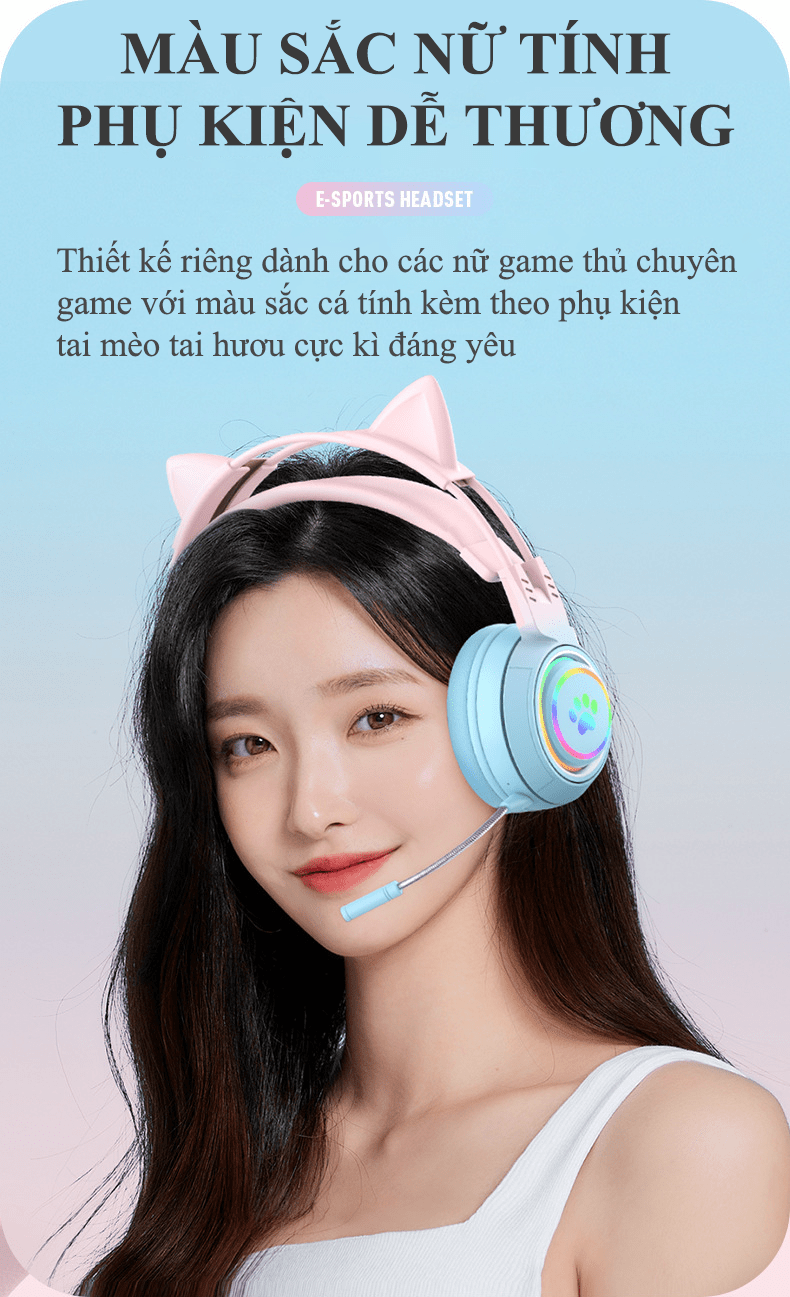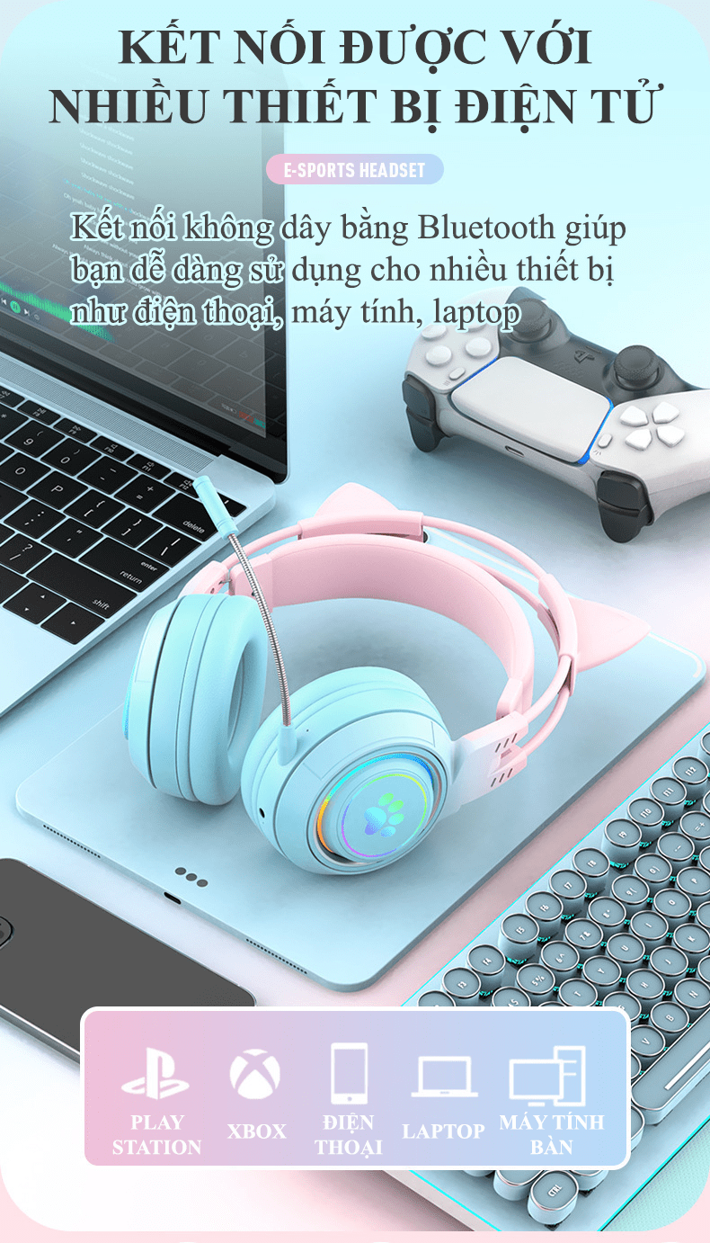 Tai nghe không dây chuyên game SY-T25 kết nối bằng Bluetooth 5.3 có đèn led RGB với màu sắc tai nghe cực đẹp