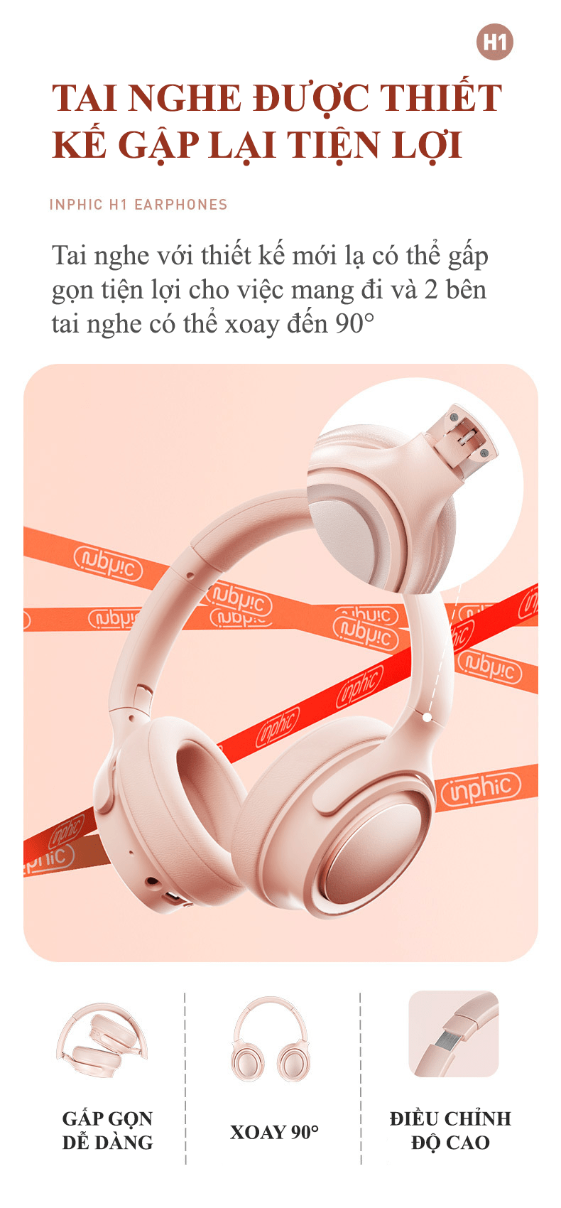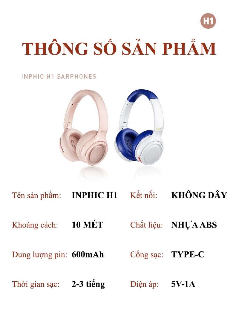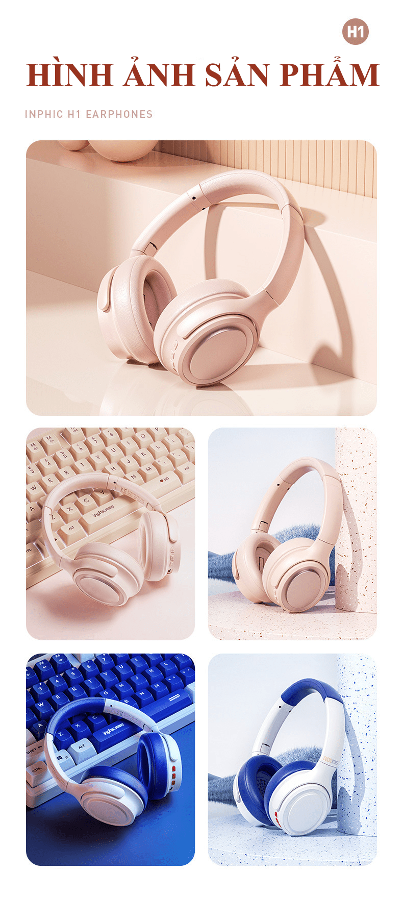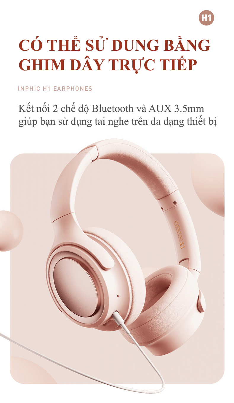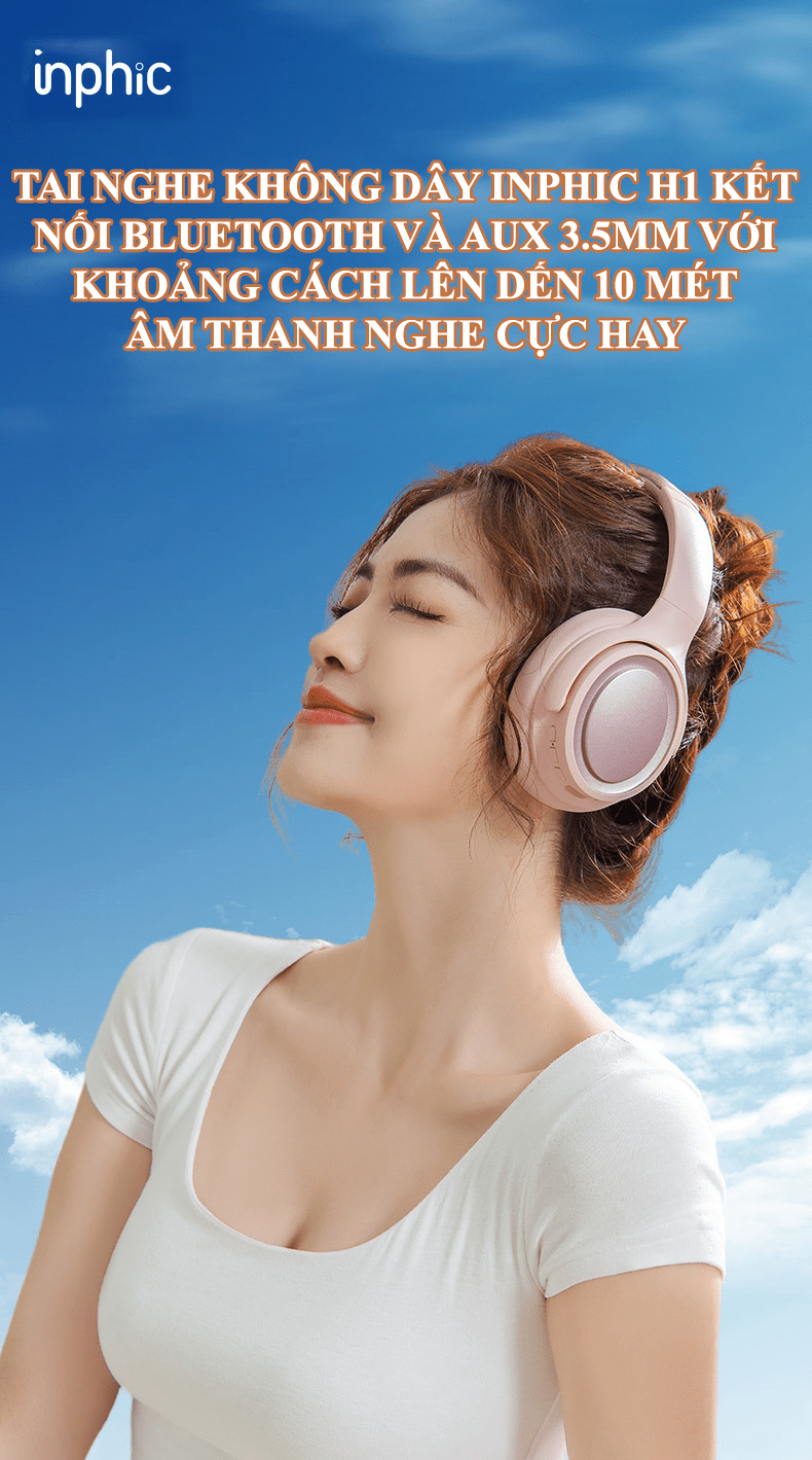 Tai nghe không dây INPHIC H1 kết nối Bluetooth 5.3 và cổng AUX 3.5mm dung lượng pin lớn 600mAh với âm thanh cực hay