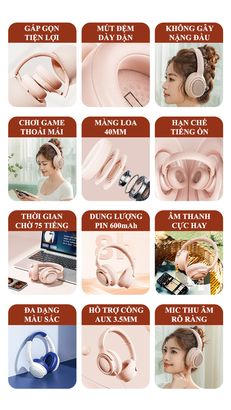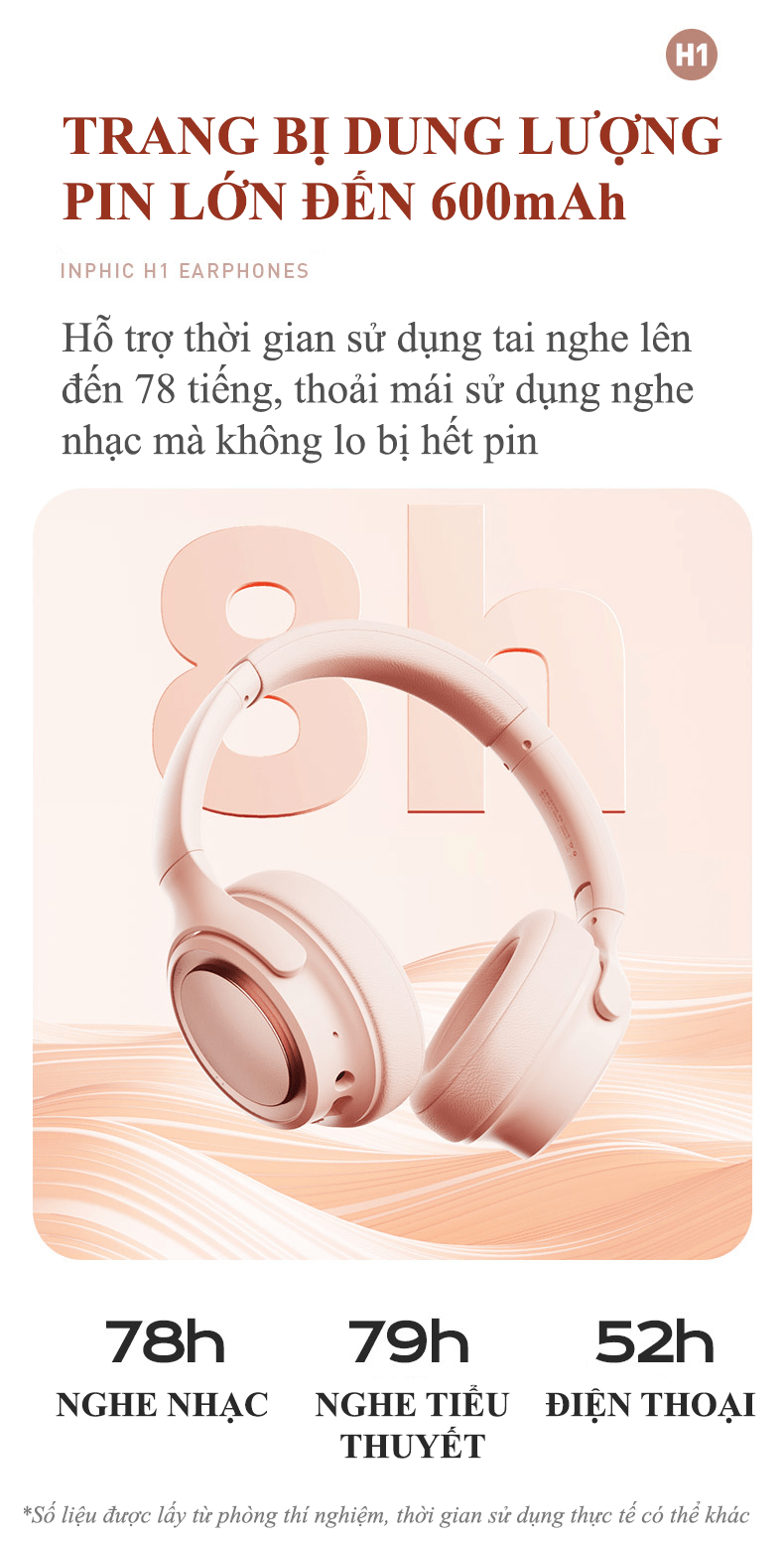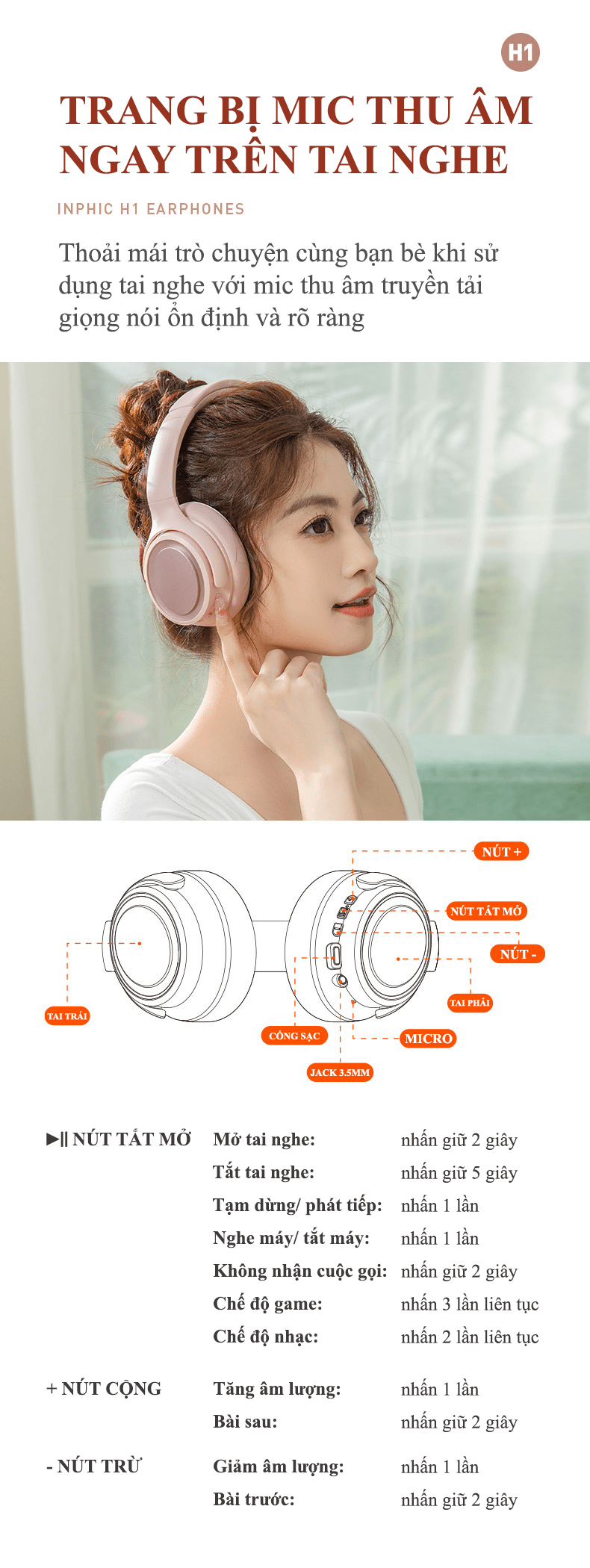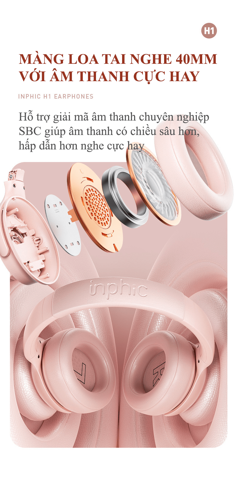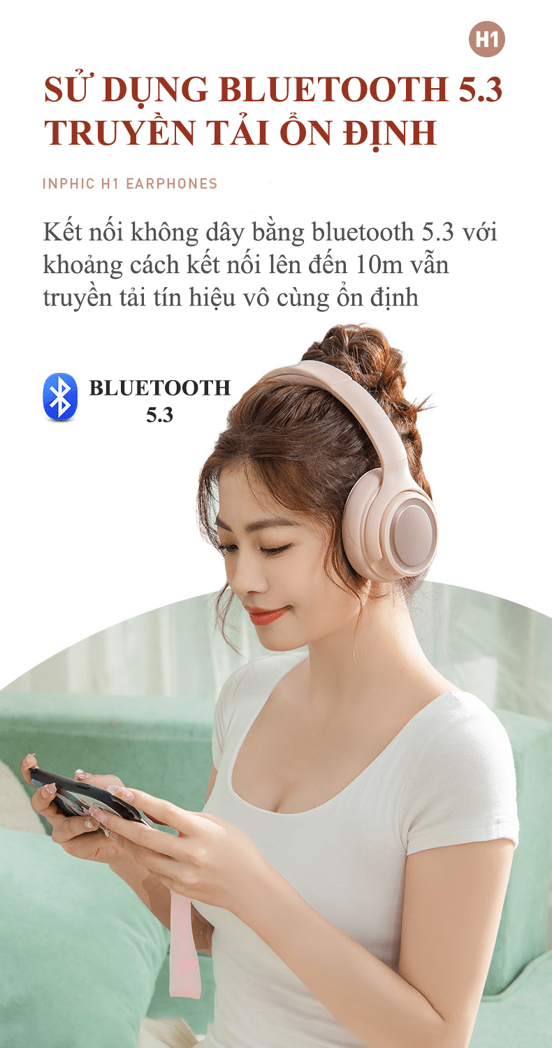 Tai nghe không dây INPHIC H1 kết nối Bluetooth 5.3 và cổng AUX 3.5mm dung lượng pin lớn 600mAh với âm thanh cực hay